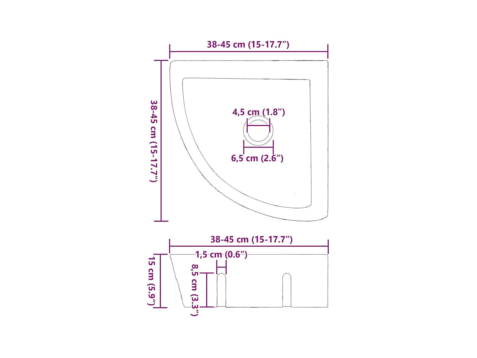 Wandgemonteerde hoekwastafel Grijs (38-45) x (38-45) x 12 cm