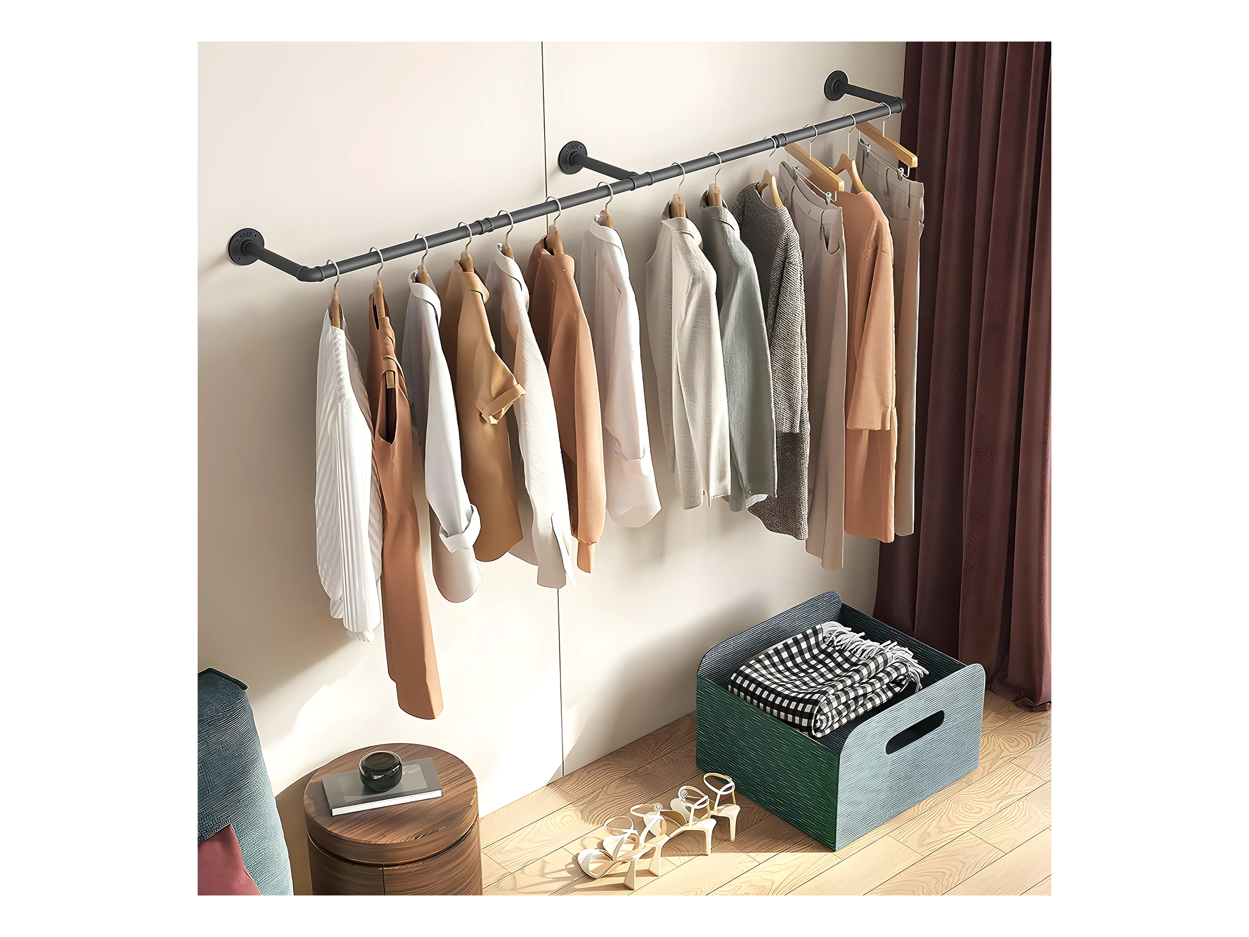 Wandgemonteerde kledingkast, solide hangend kledingrek, design, industriële kledingrek, afneembare stang, 180x27x2,5cm