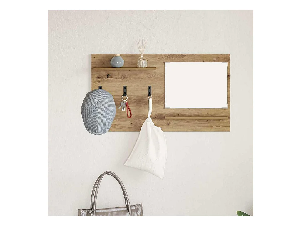 Wandkapstok met spiegel, handgemaakt eikenhout, 70 x 10 x 90 cm