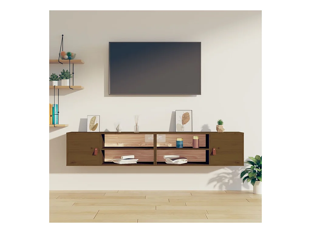Wandkasten 2 st 80x30x30 cm massief grenenhout honingbruin