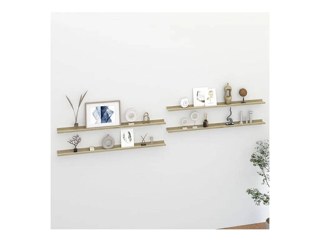 Wandplanken 4 stuks wit en sonoma eiken 60x9x3 cm