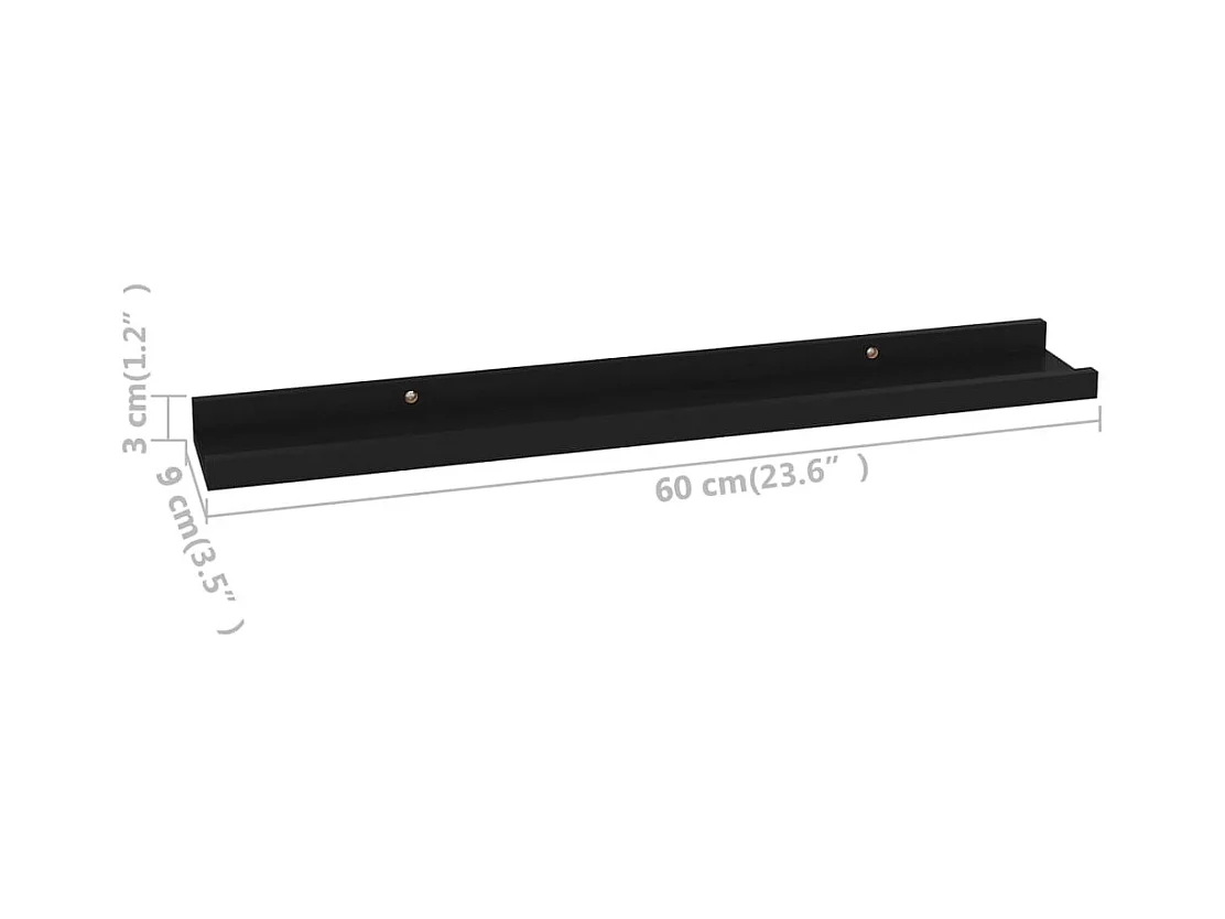 Zwevende wandplank Zwart 60x23,5x3,8 cm MDF