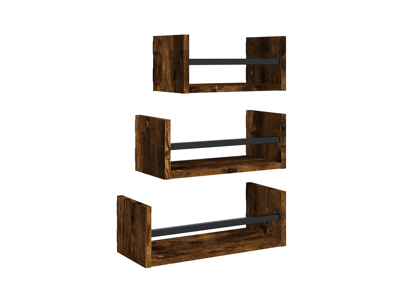 Wandplankenset met stangen 3 stuks gerookt eiken