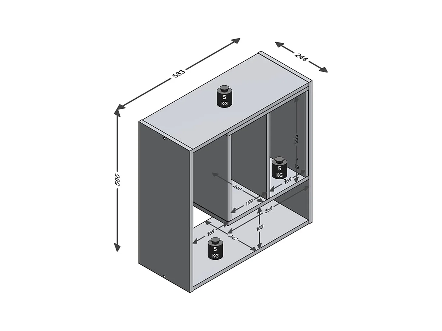 Wandschap met 3 open vakken 58,3x24,4x58,6 cm