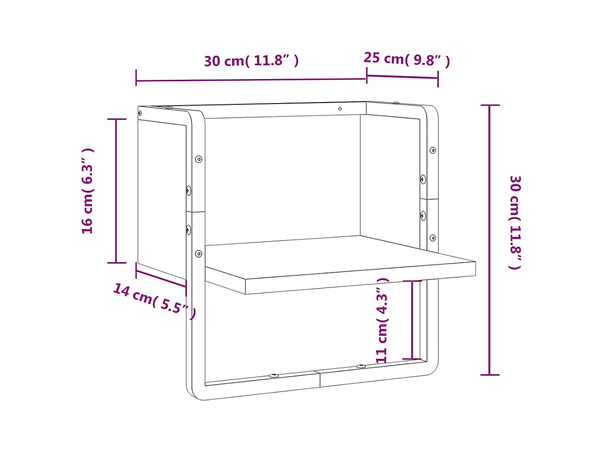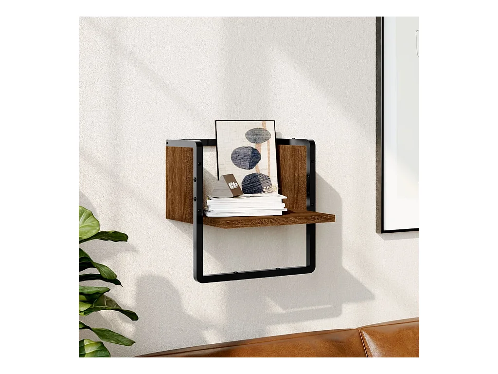 Wandschap met stang 30x25x30 cm bruin eikenkleur
