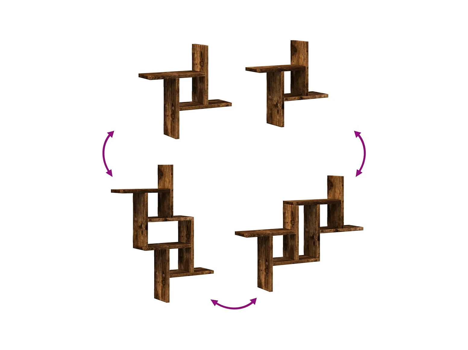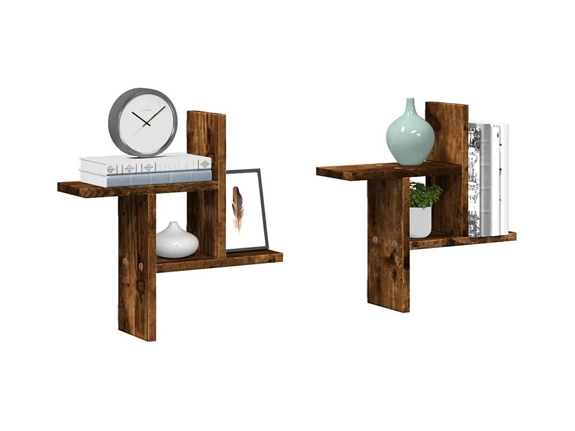 Wandschappen 2 st 38x12x38 cm bewerkt hout gerookt eikenkleurig