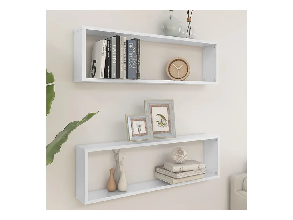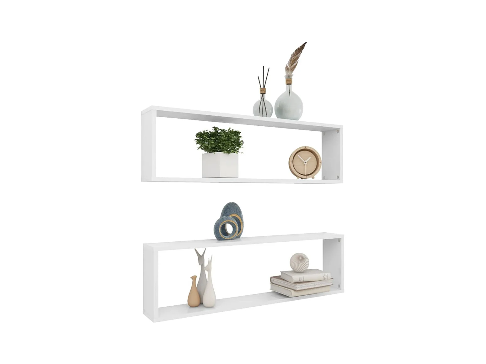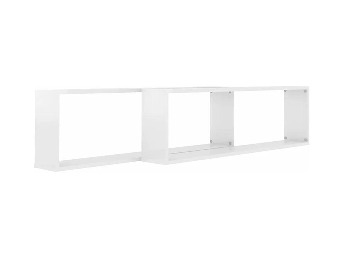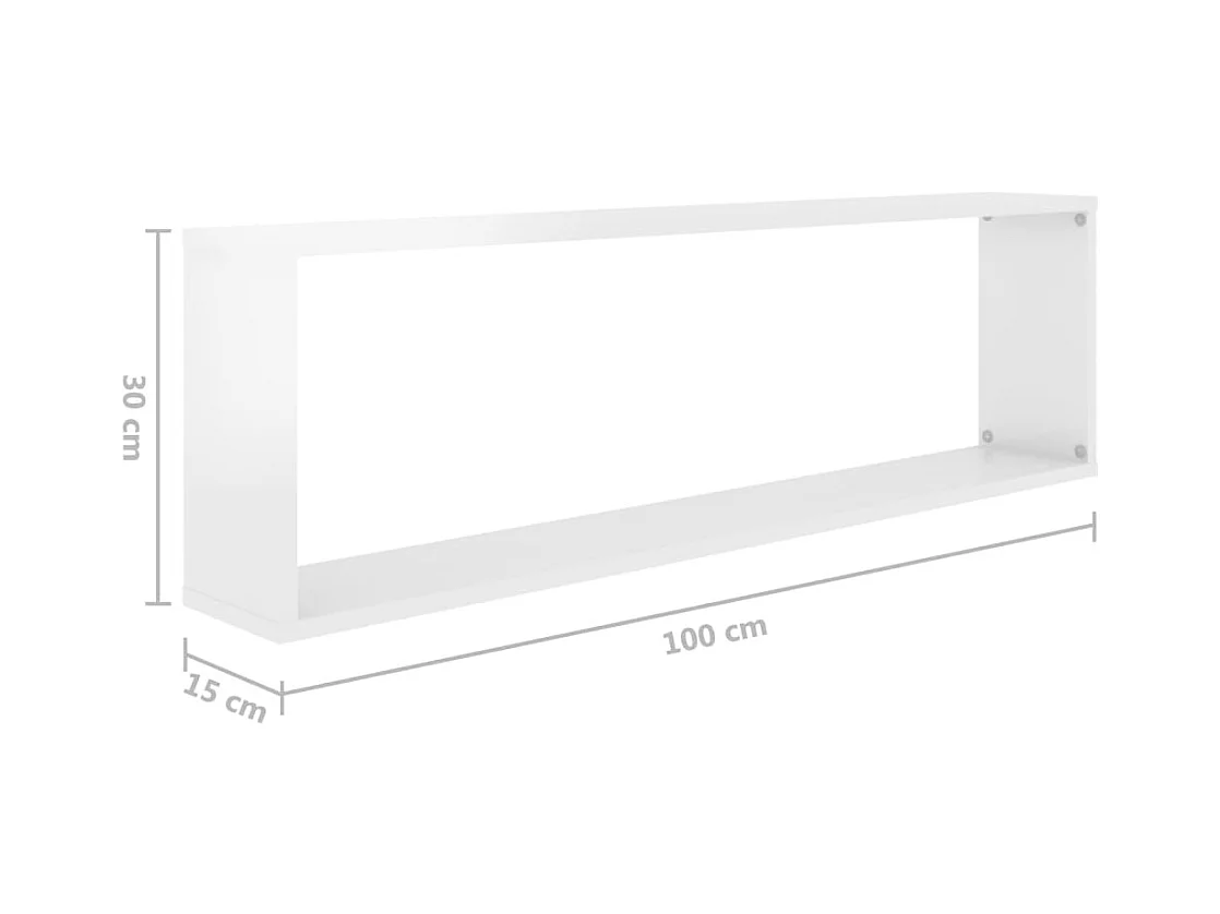 Wandschappen kubus 2 st 100x15x30 cm bewerkt hout hoogglans wit