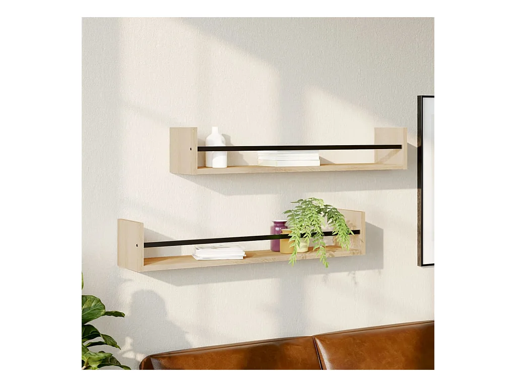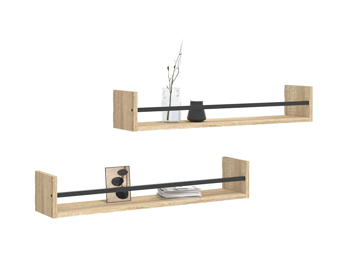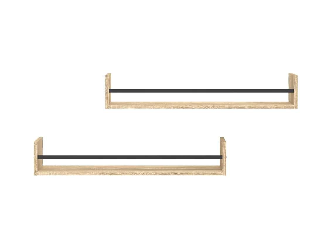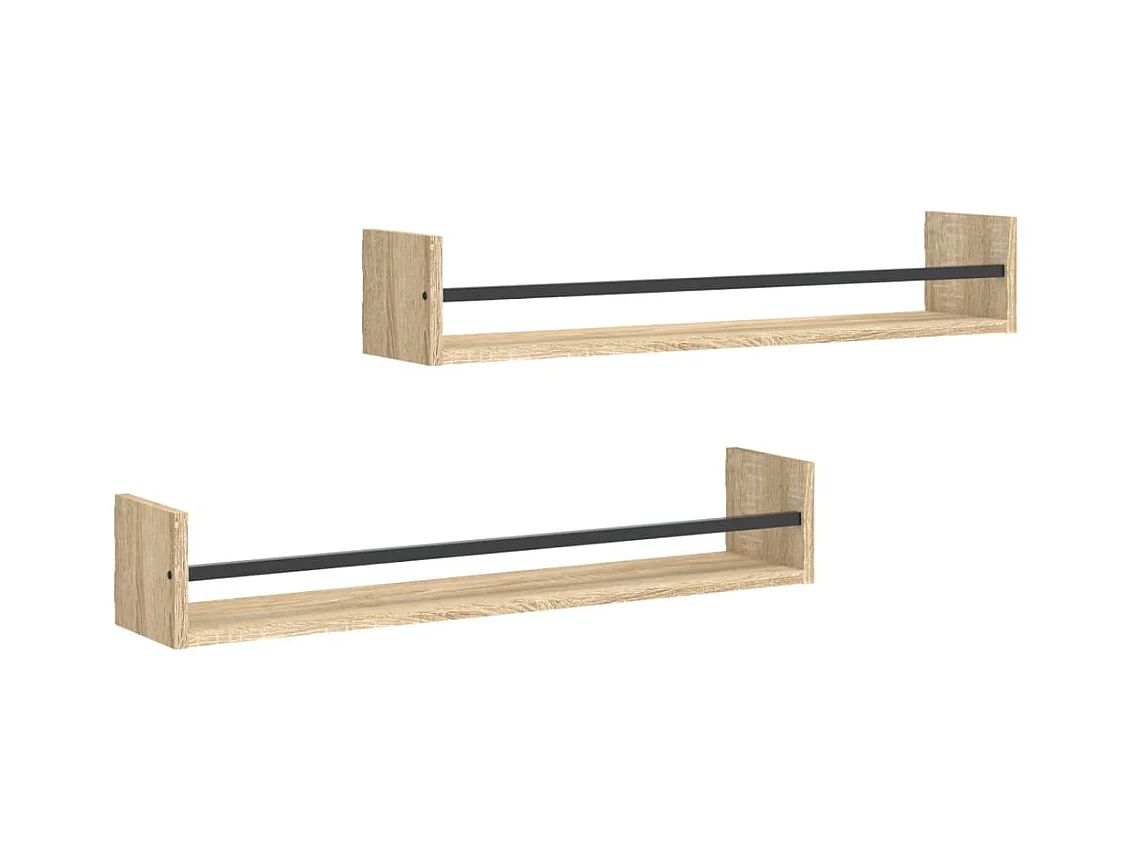 Wandschappen met stangen 2 st 80x16x14 cm Sonoma eikenkleurig NL990493