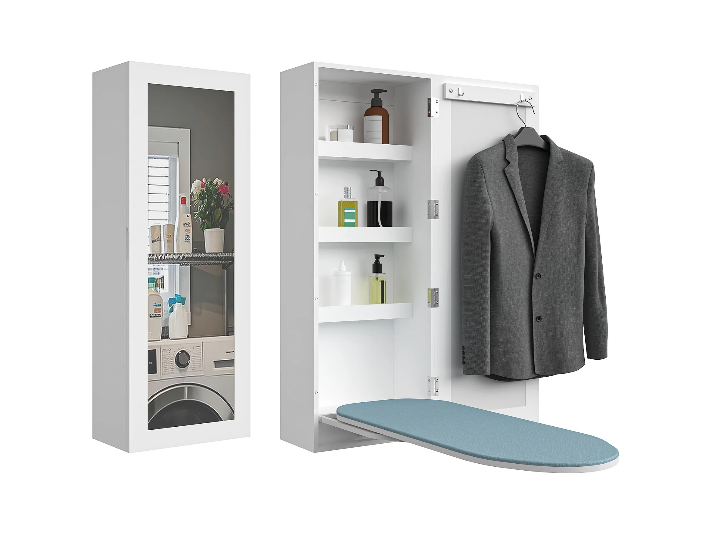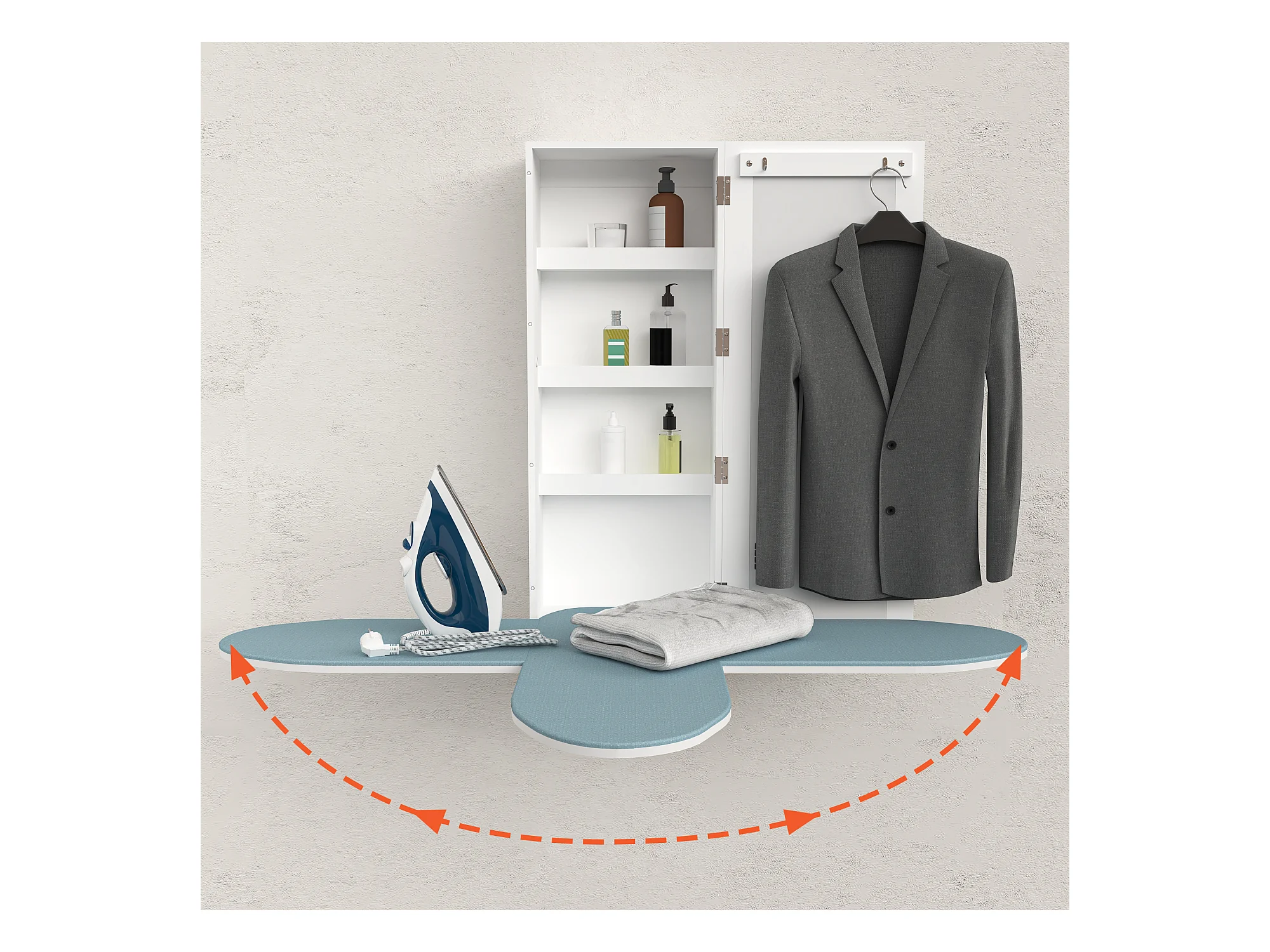 Wandstrijkplank met geïntegreerde spiegel, opvouwbare strijkplank, wit MDF (35,5x21x95 cm)