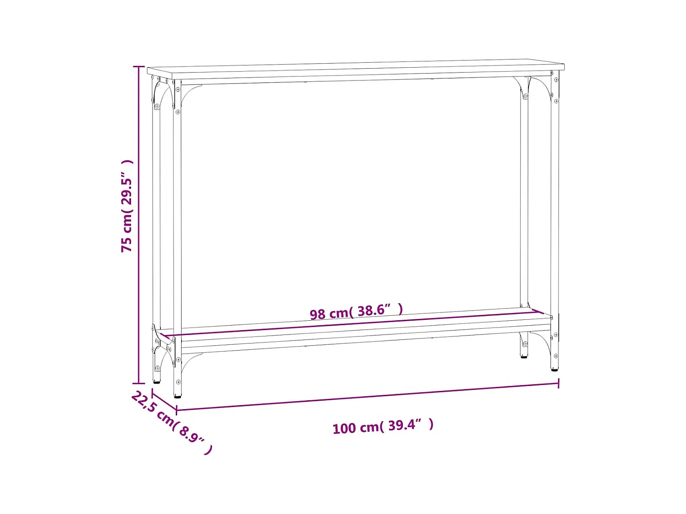 Sonoma grijze consoletafel 100x22,5x75 cm bewerkt hout