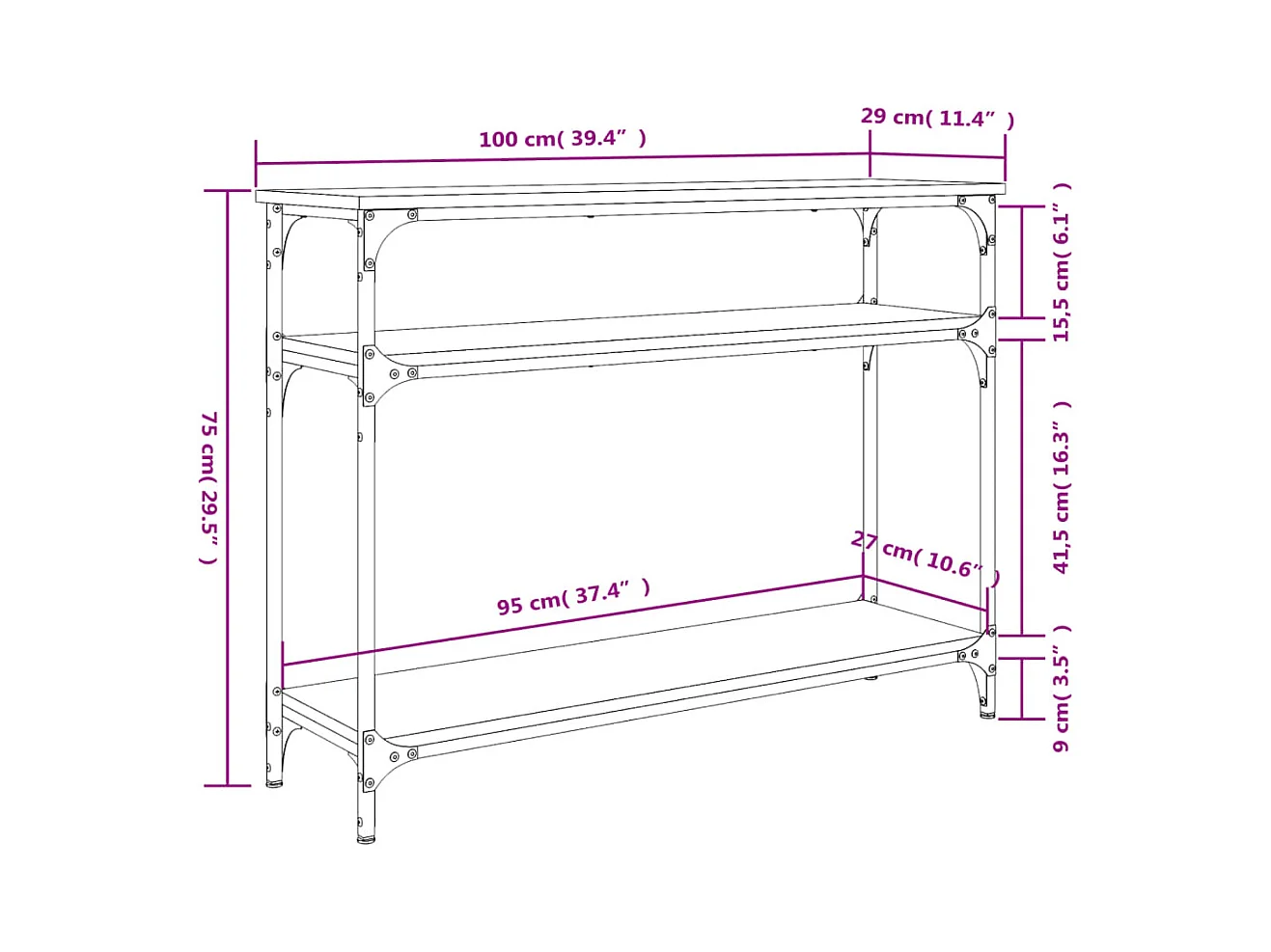 Wandtafel 100x29x75 cm bewerkt hout grijs sonoma eikenkleurig