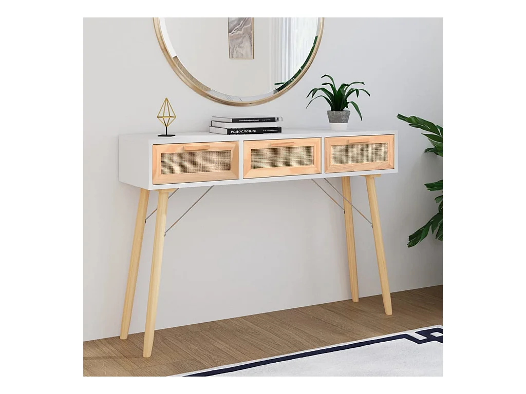Wandtafel 105x30x75 cm massief grenenhout en natuurlijk rattan