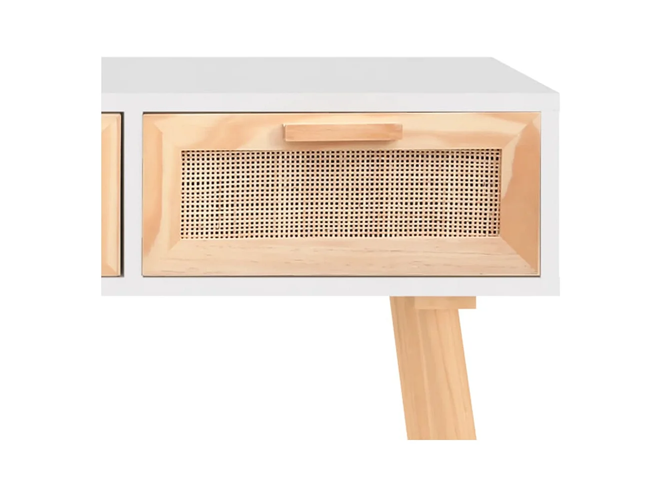 Wandtafel 80x30x75 cm massief grenenhout en natuurlijk rattan