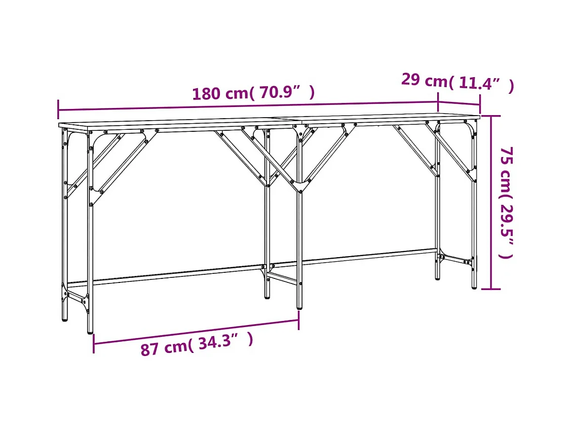 Wandtafel 180x29x75 cm bewerkt hout sonoma eikenkleurig