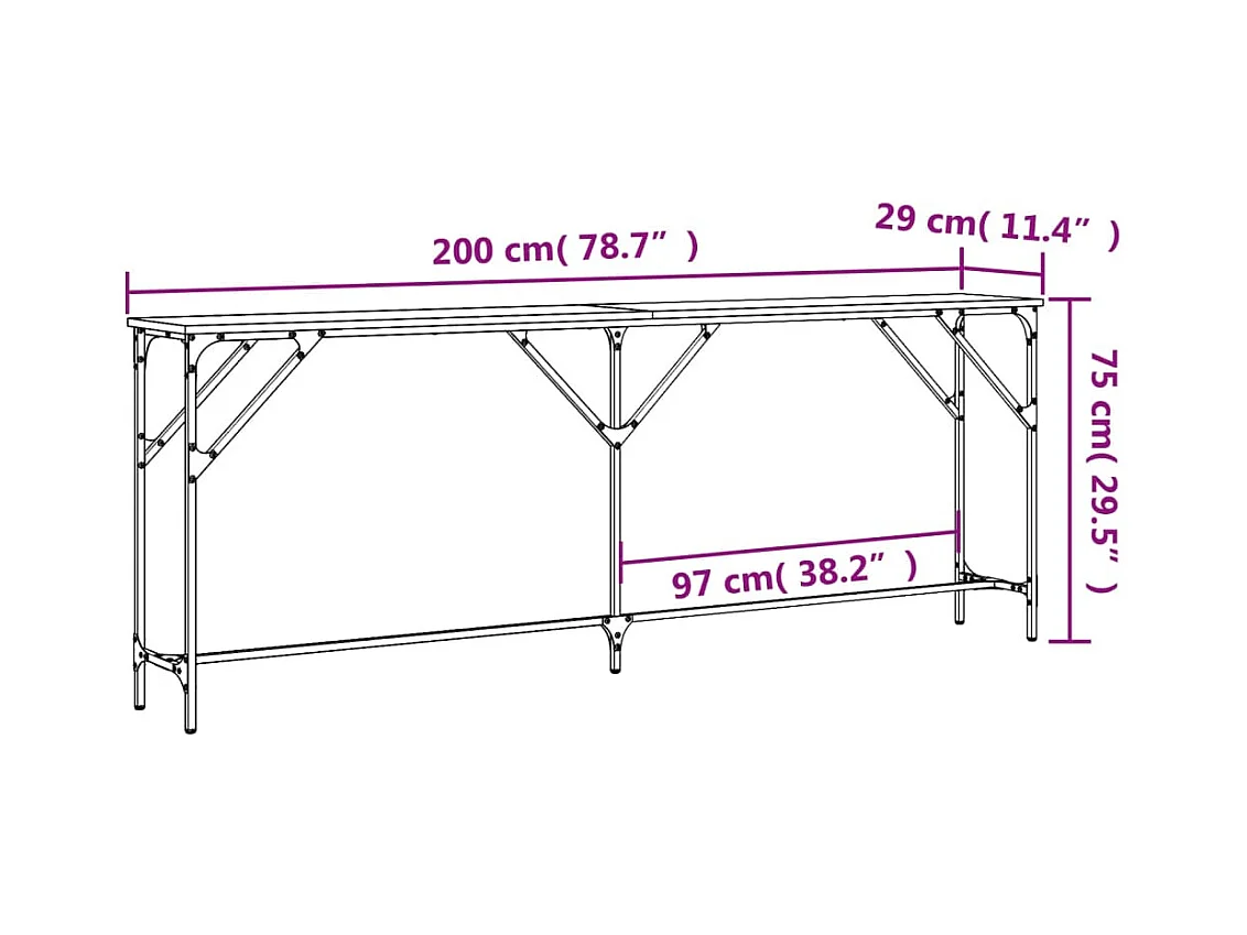 Wandtafel 200x29x75 cm bewerkt hout sonoma eikenkleurig