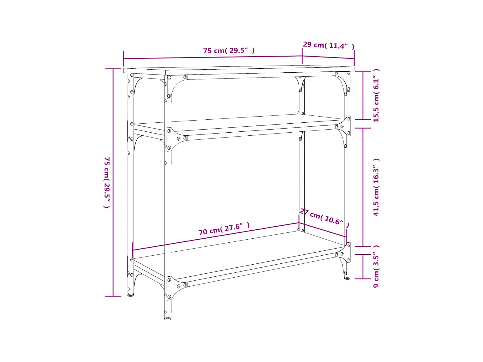 Sonoma grijze consoletafel 75x30,5x75 cm bewerkt hout