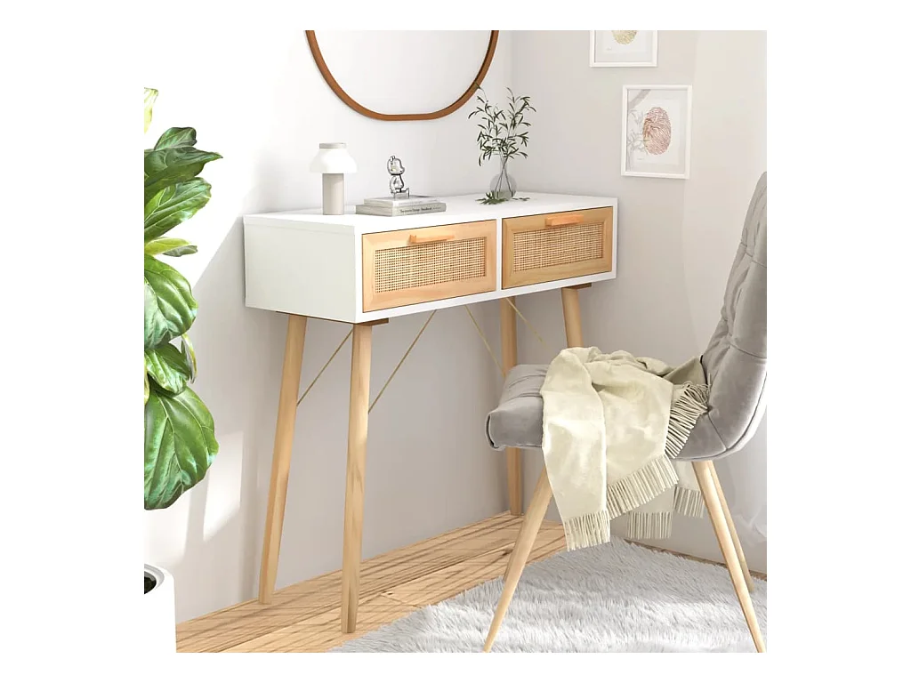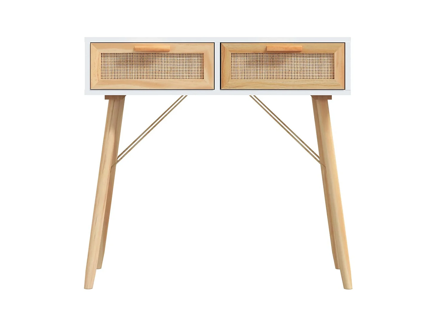Wandtafel 80x30x75 cm massief grenenhout en natuurlijk rattan