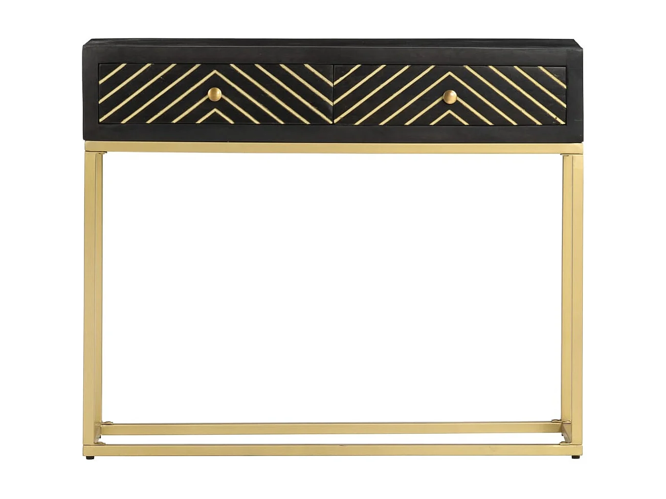 Wandtafel 90x30x75 cm massief mangohout zwart en goudkleurig