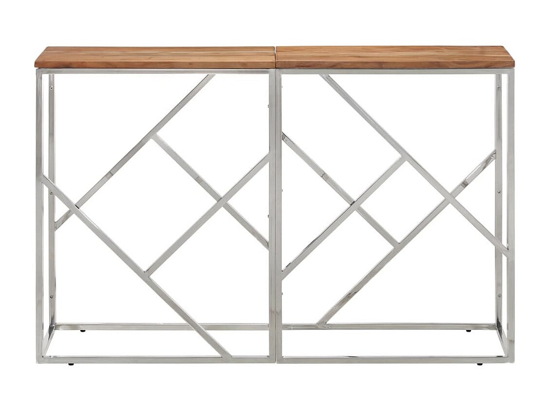 Wandtafel roestvrij staal en massief acaciahout zilverkleurig