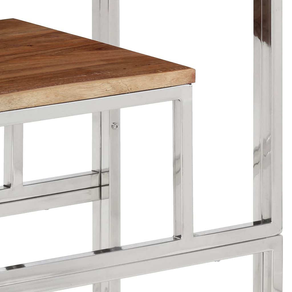 Wandtafel roestvrij staal en massief acaciahout zilverkleurig