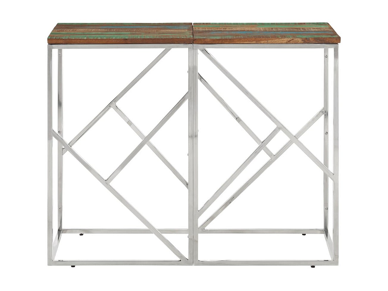 Wandtafel roestvrij staal en massief gerecycled hout zilver