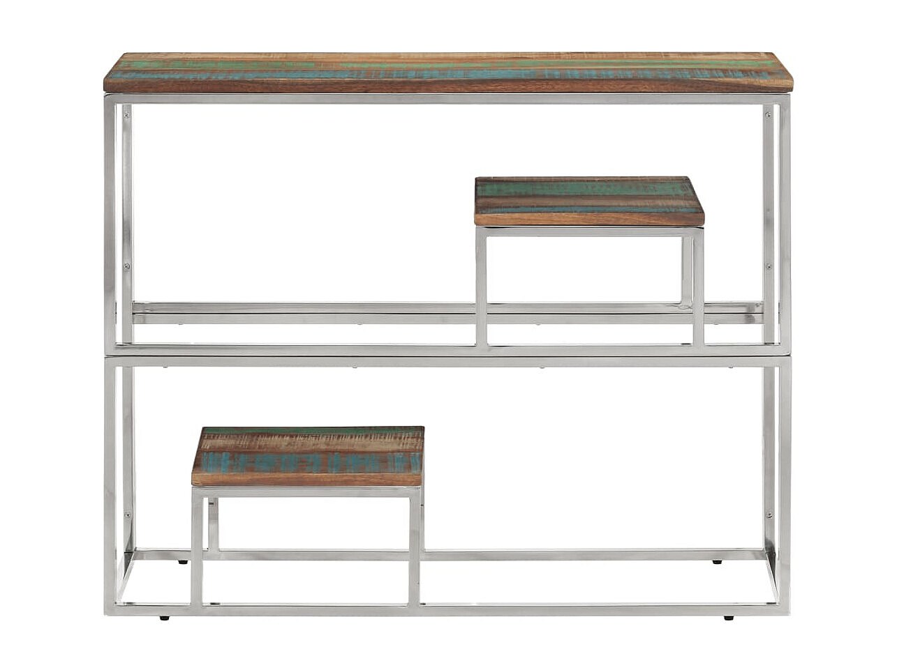 Wandtafel roestvrij staal en massief gerecycled hout zilver