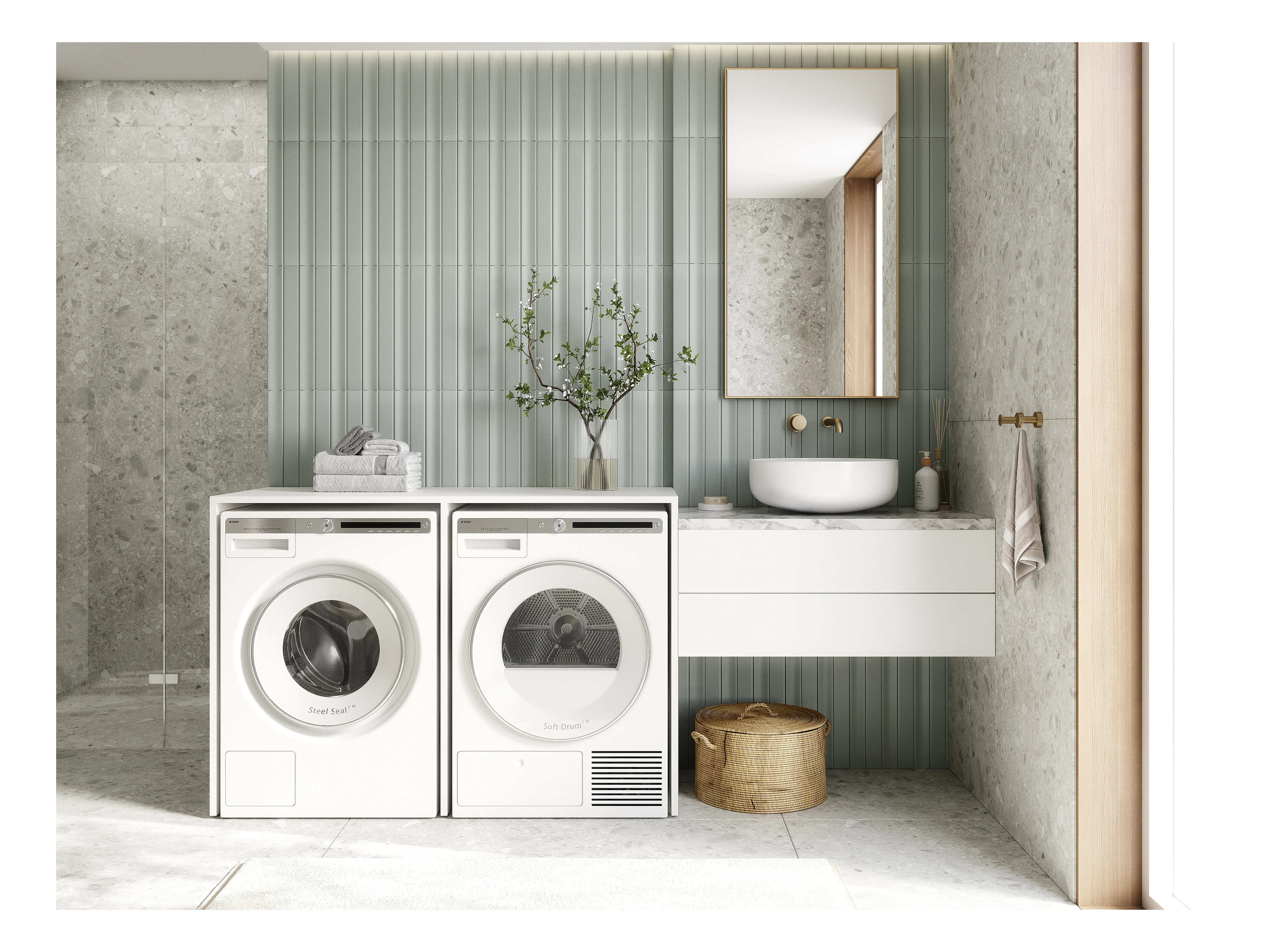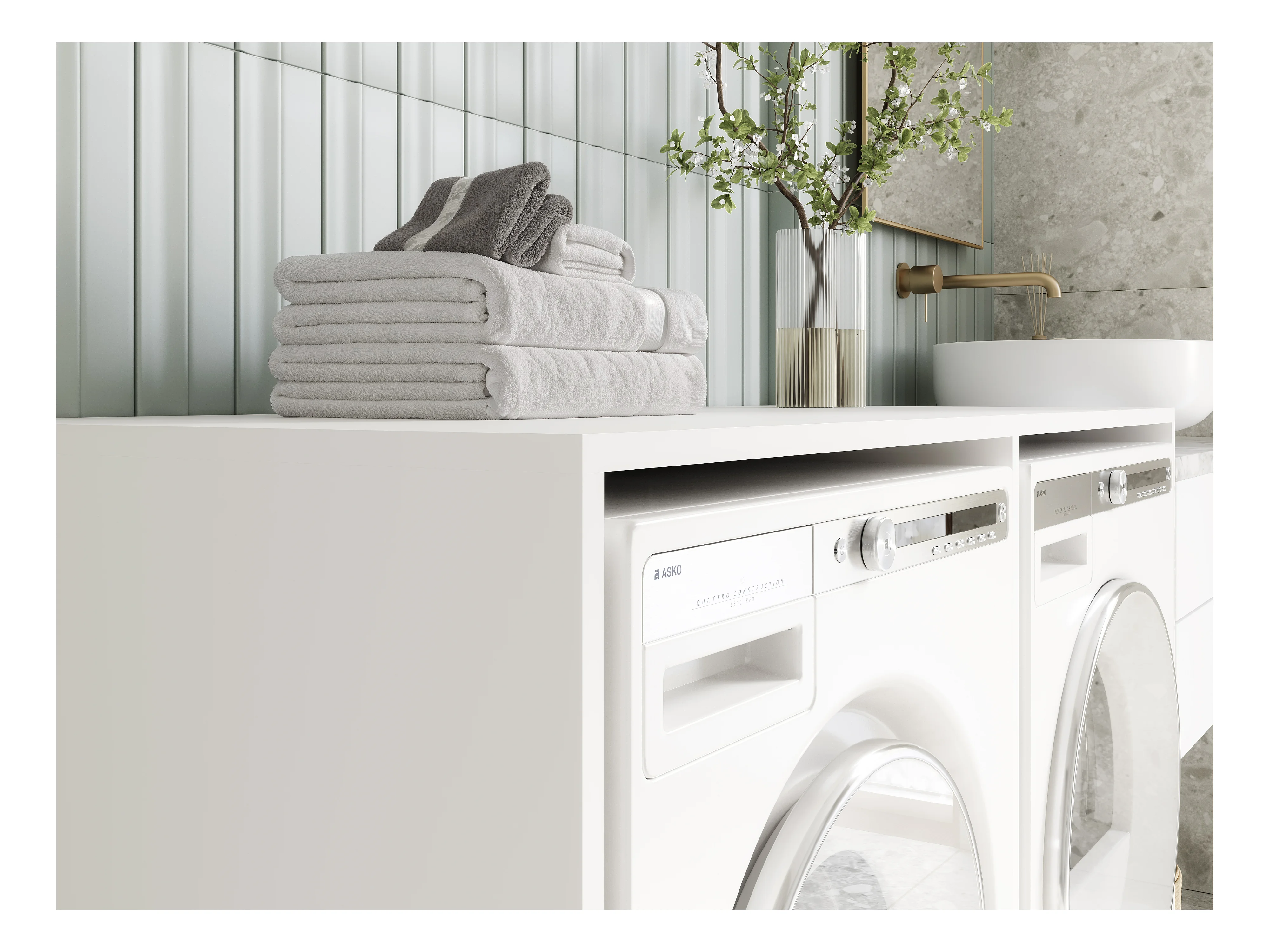 Wasmachinekast 130 cm breed, geschikt voor wasmachine en droger met opbergruimte, bovenkast voor wasmachine