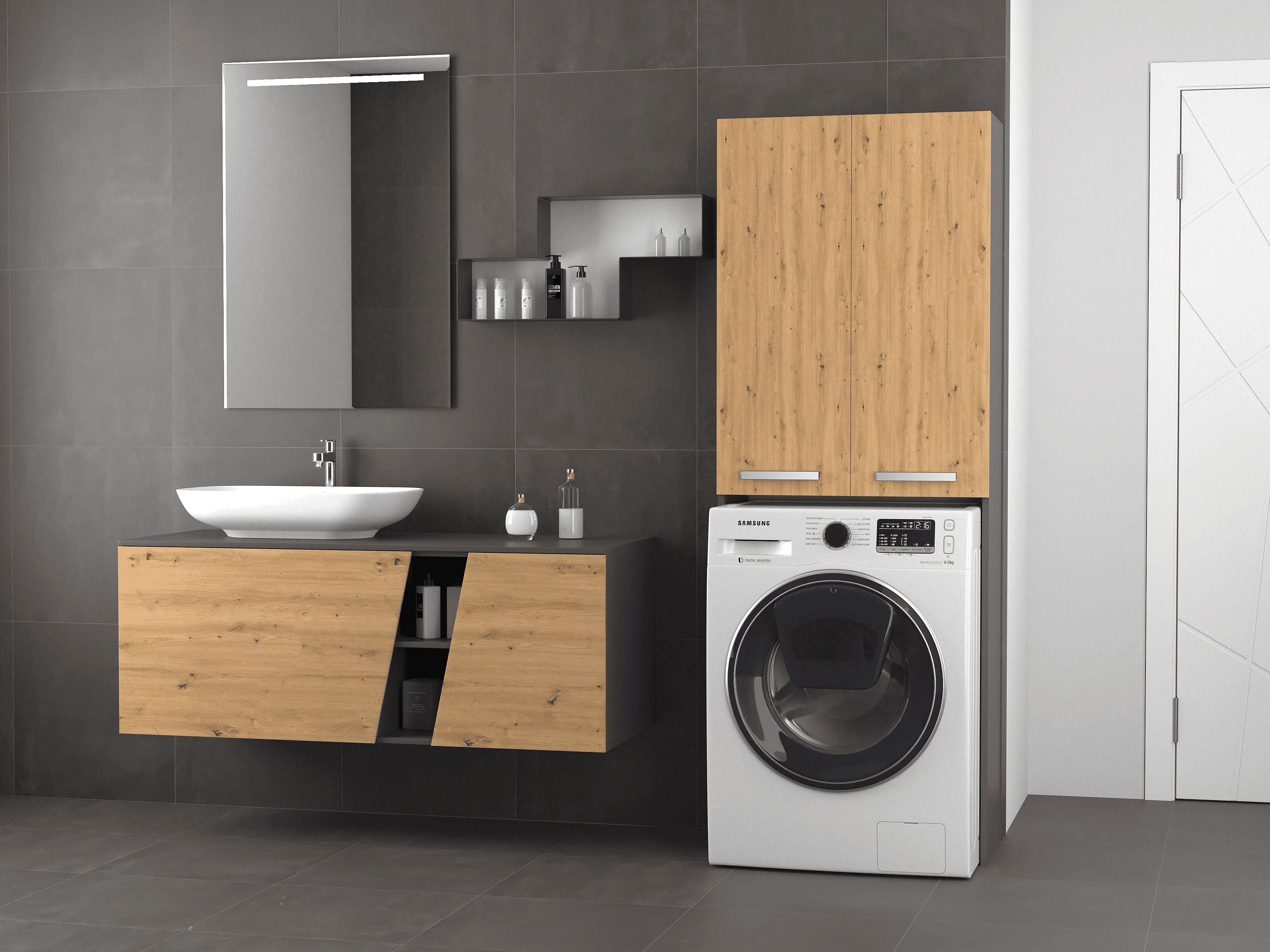 Wasmachinekast, 30 x 64 x 180 cm, Antraciet / Artisan Oak