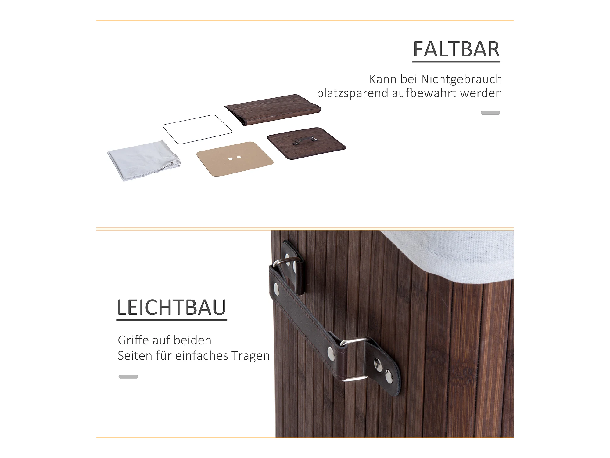 Wasmand met 2 vakken, bruin bamboe, 72 L