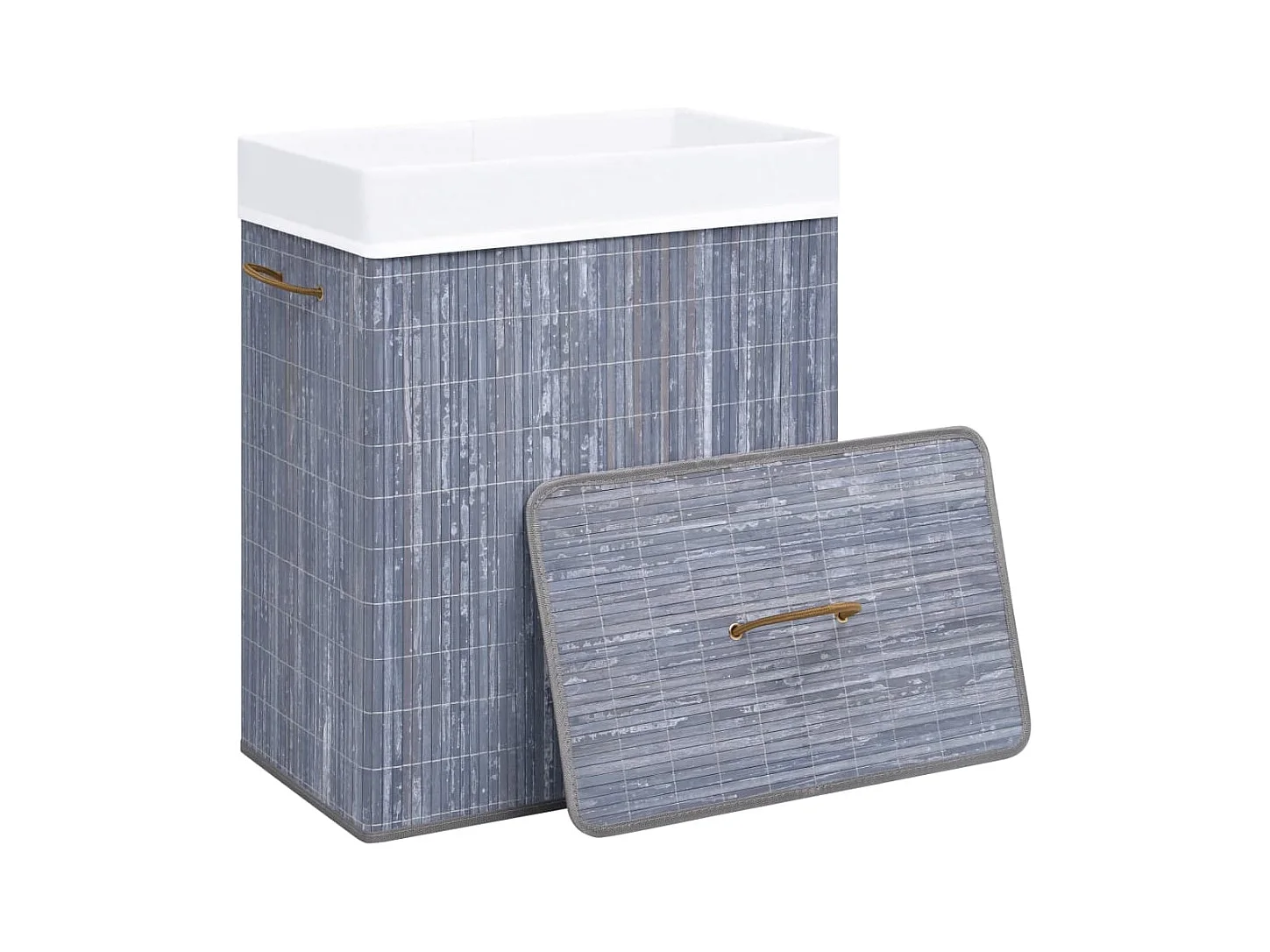 Wasmand 100L met 2 compartimenten, bamboe, grijs (52x32x63 cm)