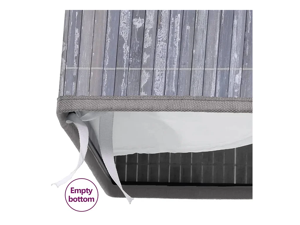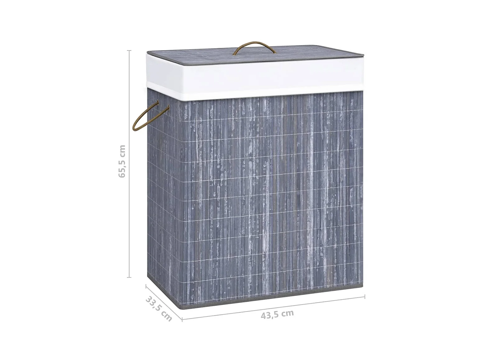 Bamboe wasmand met deksel en uitneembare tas, 55L, grijs (38x38x57 cm)