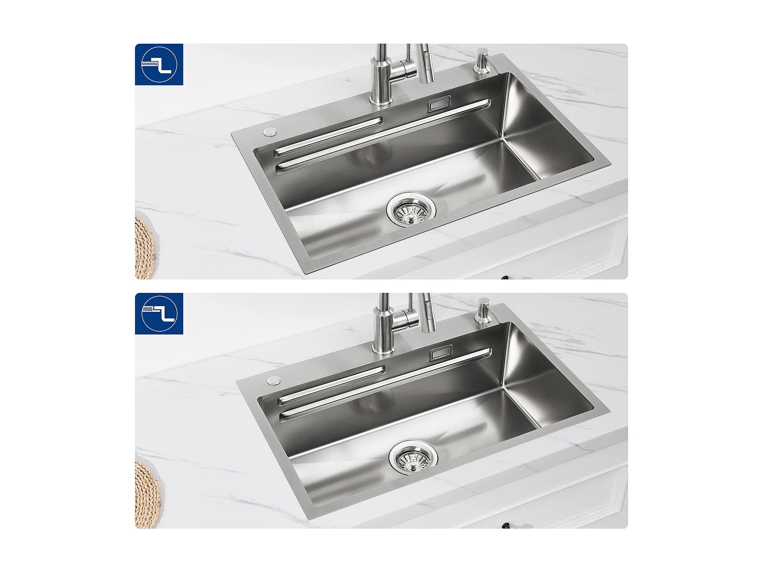 Cecipa max roestvrijstalen spoelbak 70×45×CM met afdruiprek, wastafel en zeepdispenser + lente keukenmengkraan met 3 waterafvoermodi, zwart