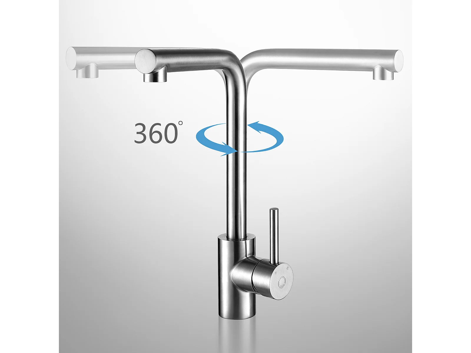Koudwater keukenkraan, 360° draaibaar, enkele hendel koud water gootsteen kraan, roestvrij staal- geborsteld