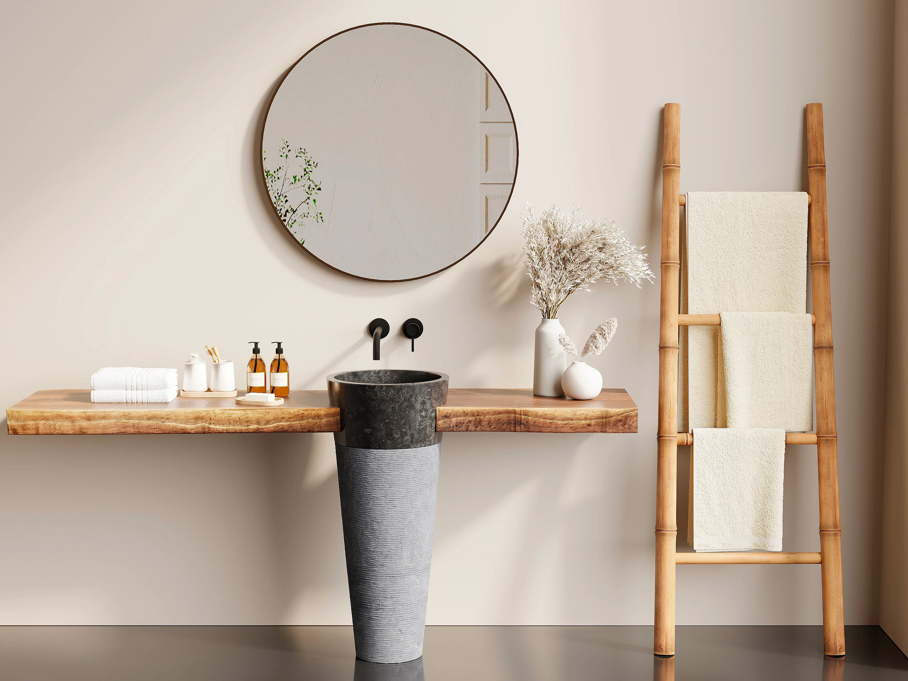 Wastafel badkamer op voet van marmer LANTA - Kleur grijs