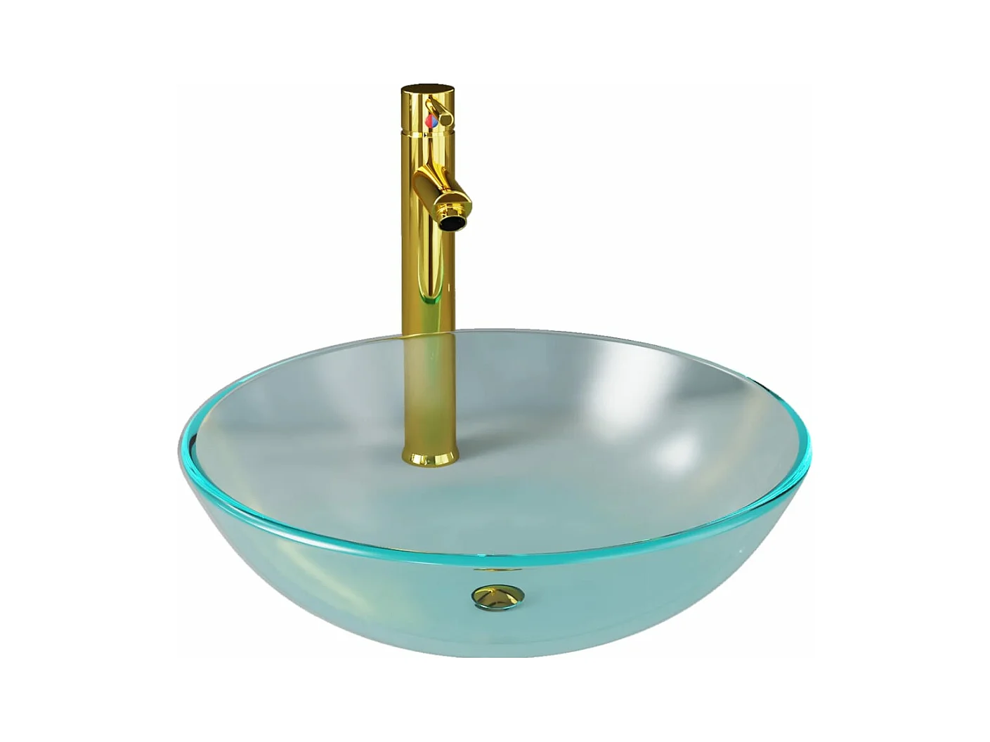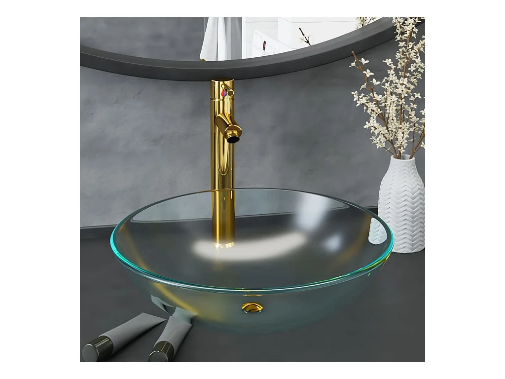 Badkamerwastafel met kraan en drukknopafvoer Gehard glas