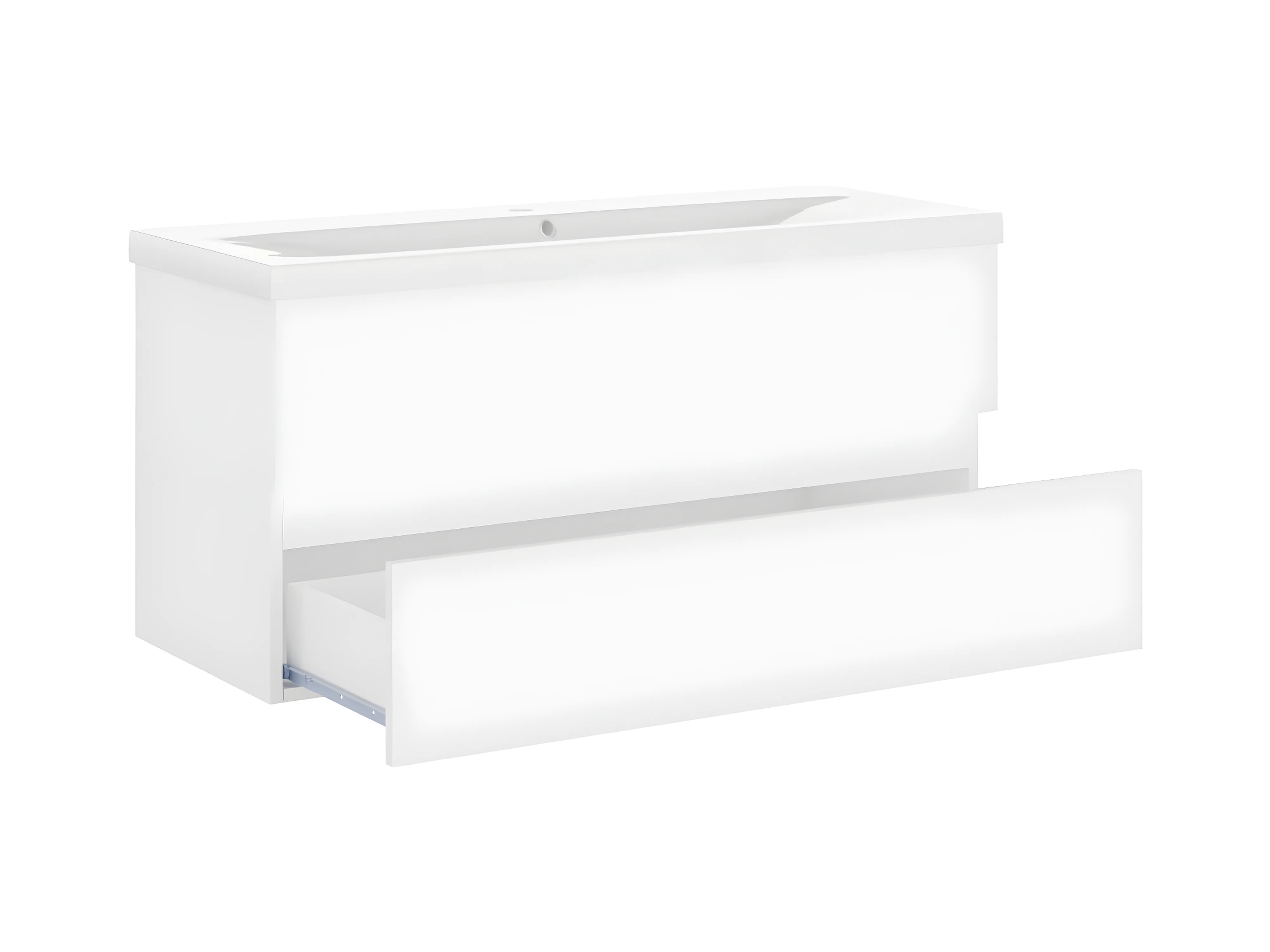 Wastafelkast met ingebouwde wastafel bewerkt hout hoogglans wit BE724904