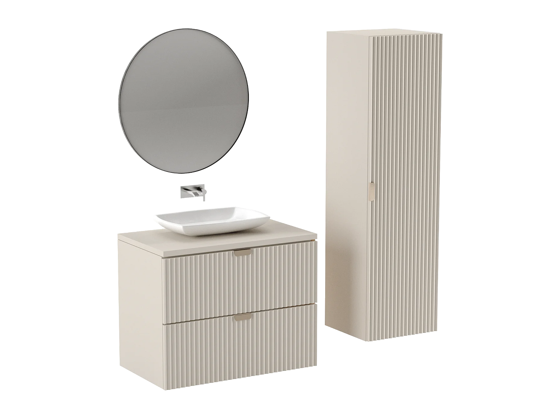 Wastafelkast WENA, gecanneleerde fronten, Willy, 80x60x47 cm, Kasjmir