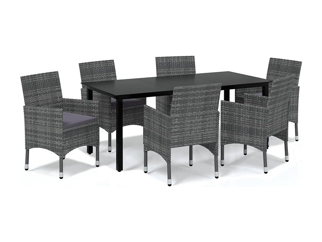 Thomian 7-delige Tuinset met kussens poly rattan grijs