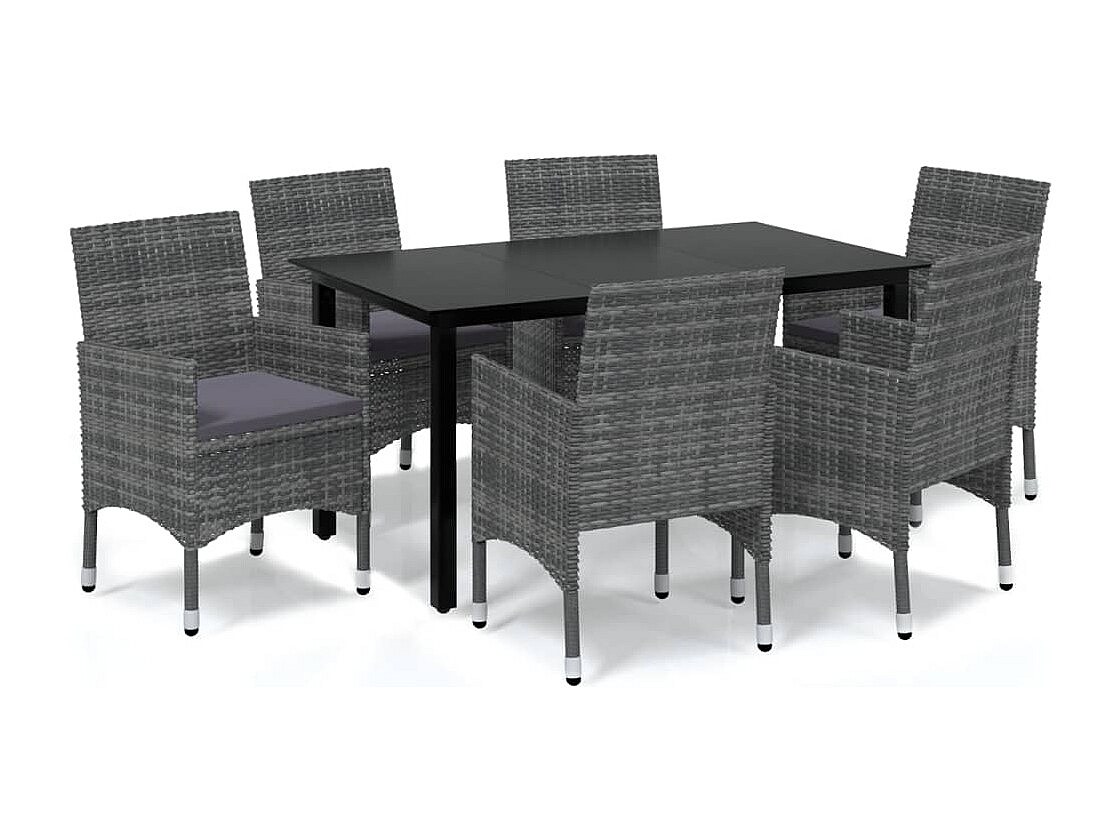 Tijn 7-delige Tuinset met kussens poly rattan grijs