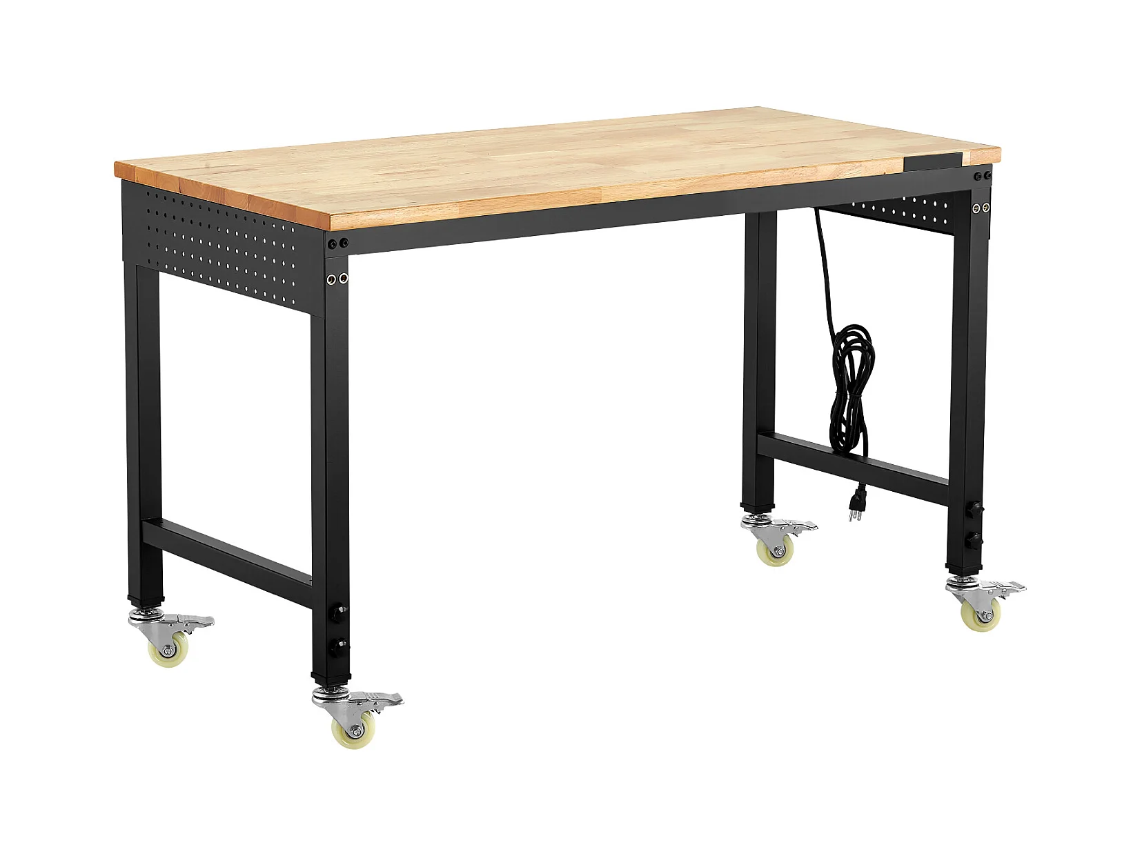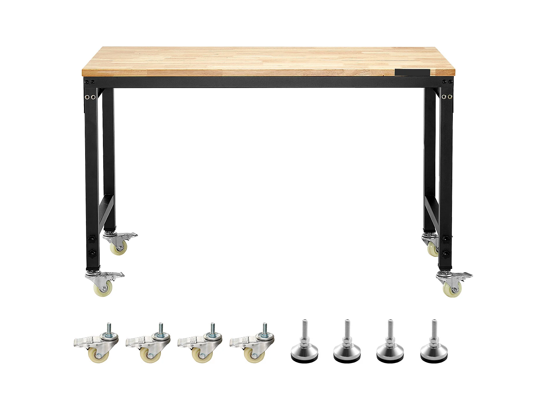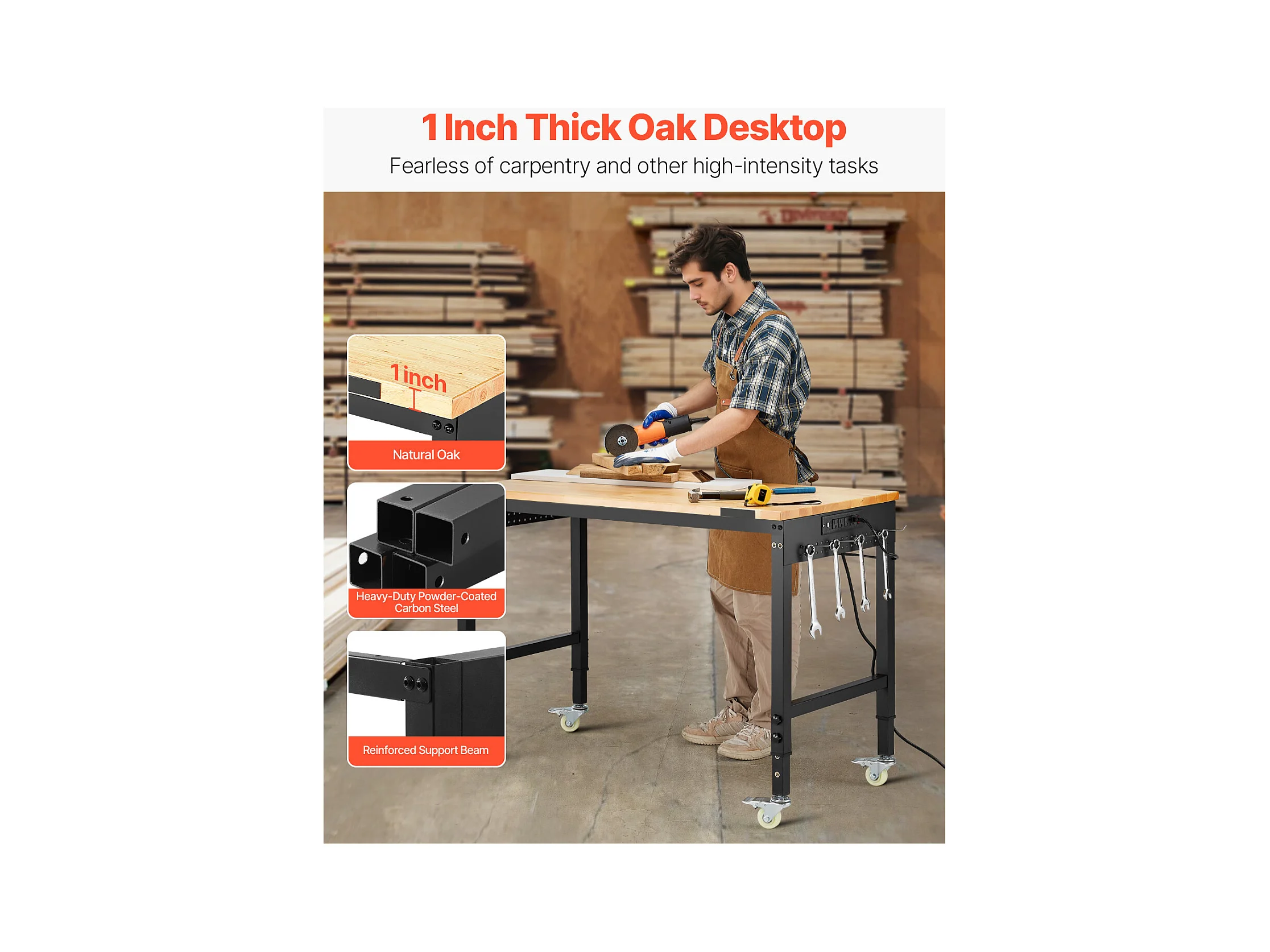 Werkbank voor Garage SucceBuy, 122 cm, Werktafel op Wieltjes met Verstelbare Hoogte, Draagvermogen 907,2 kg, van Eikenhout voor Kantoor, Thuis