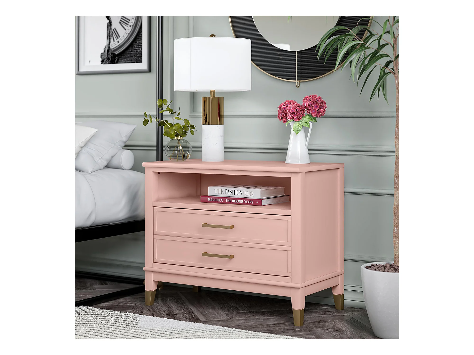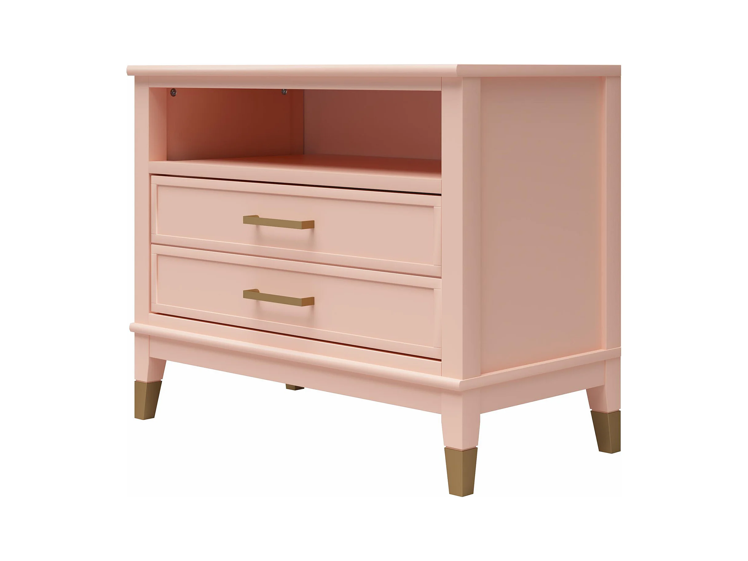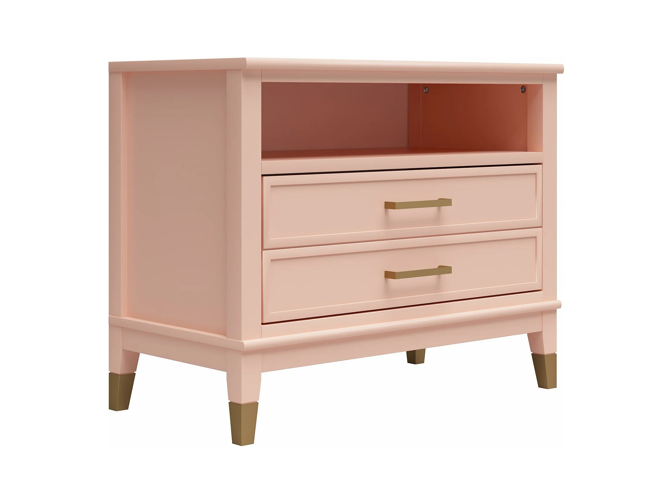 Westerleigh | Nachtkastje met 1 Lade in Roze - Gouden Pootjes en Handgrepen