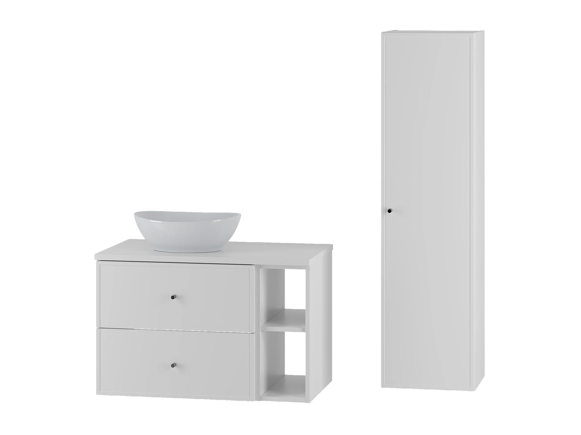 Wit badkamerset 80 cm Kast Rek Wastafelblad Kolom Marco