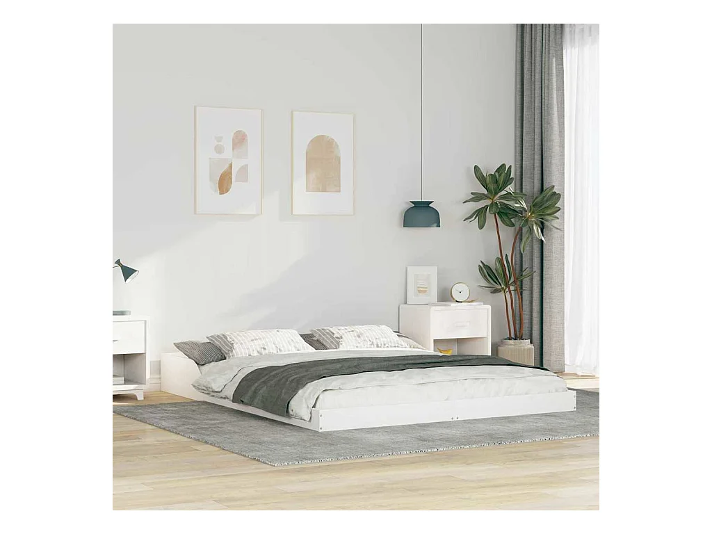 Wit bedframe 140 x 210 cm Massief grenenhout