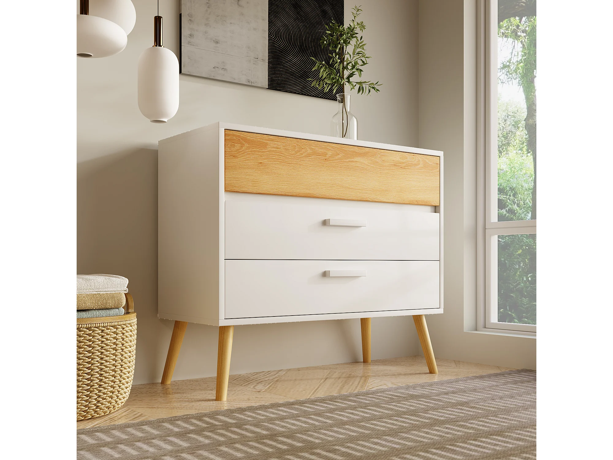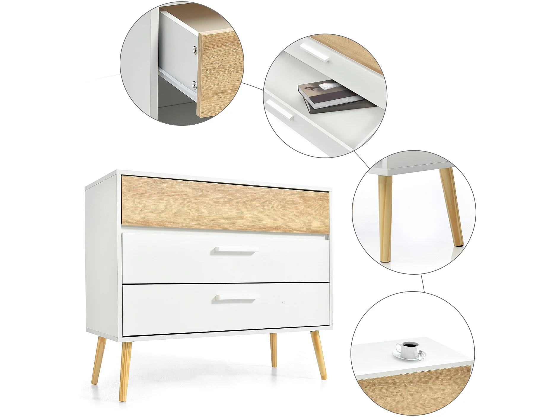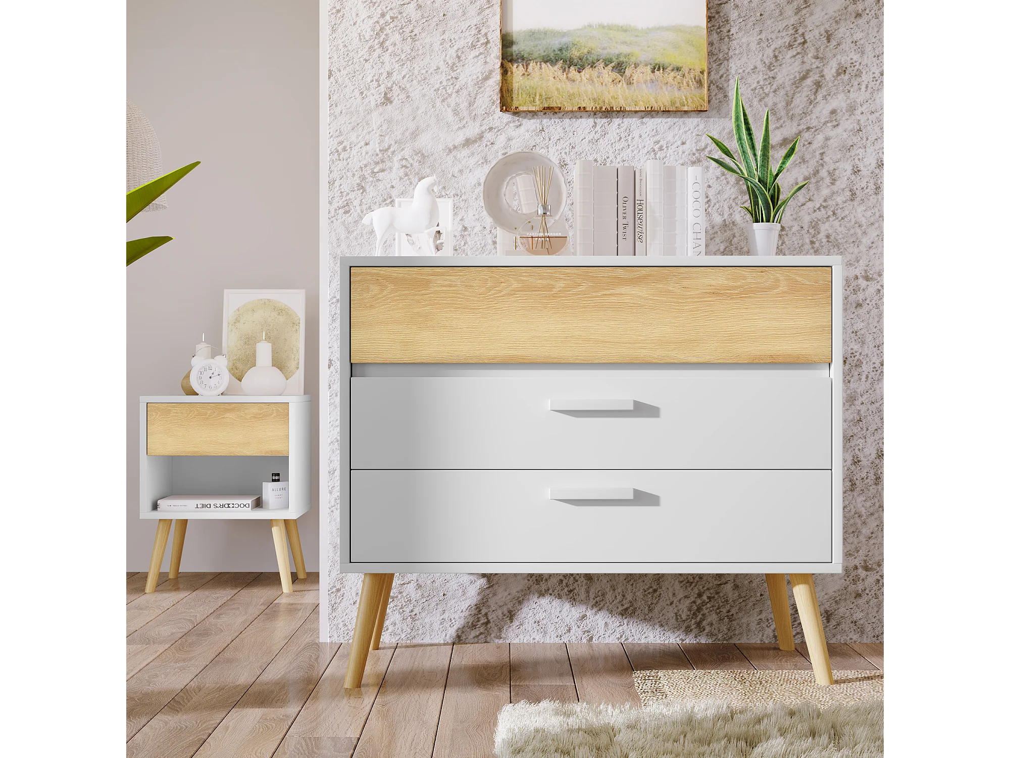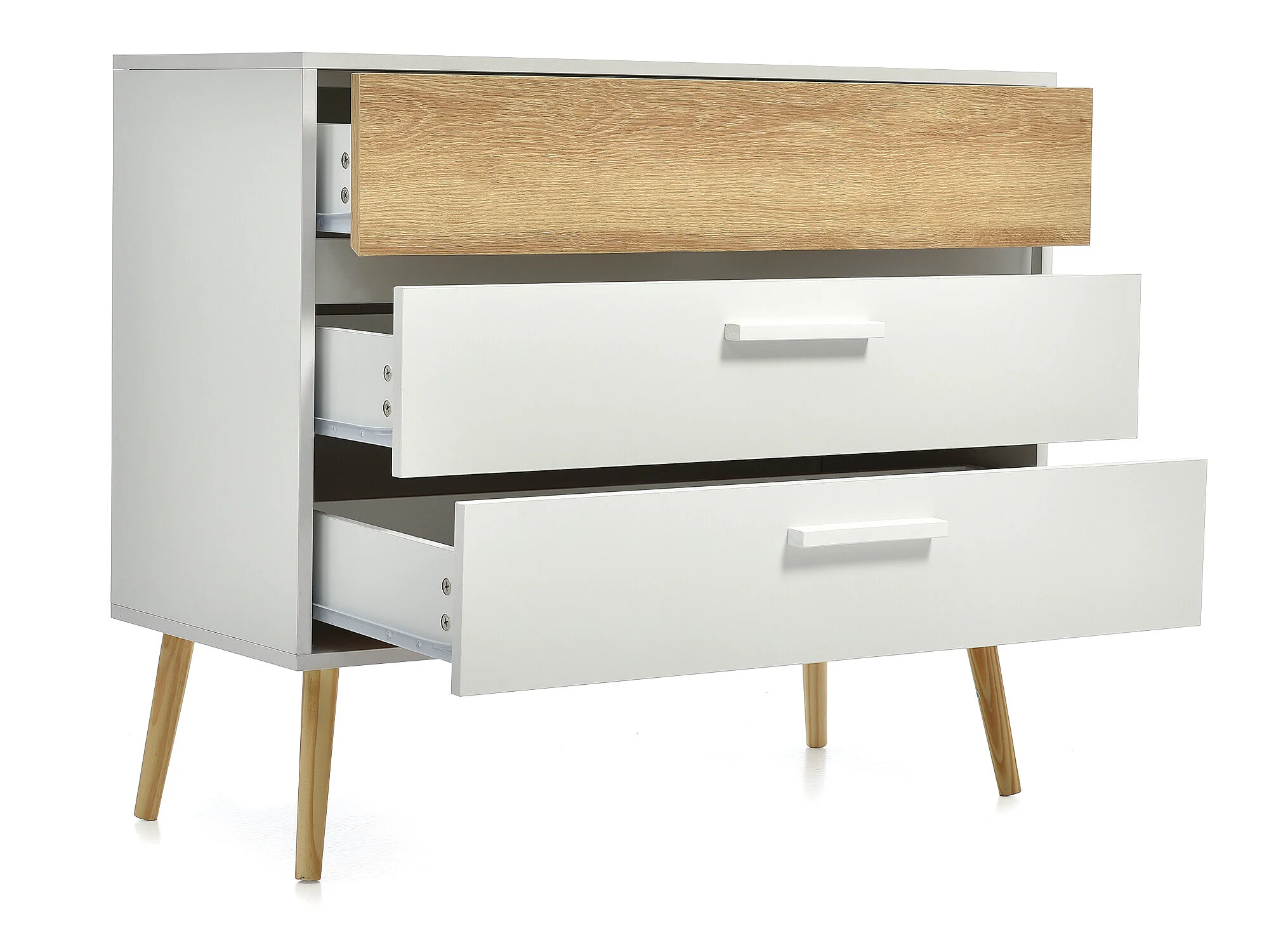 Wit dressoir met 3 laden, ladekast aan de zijkant