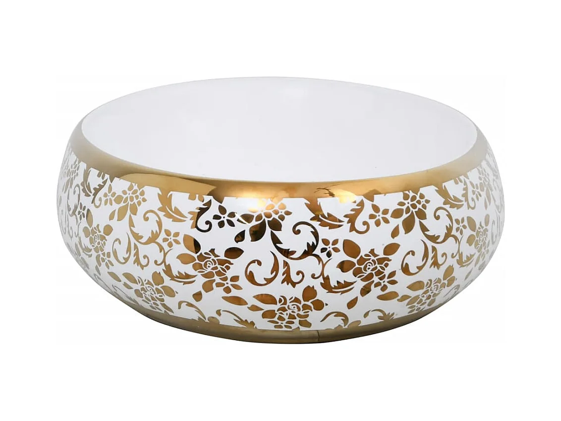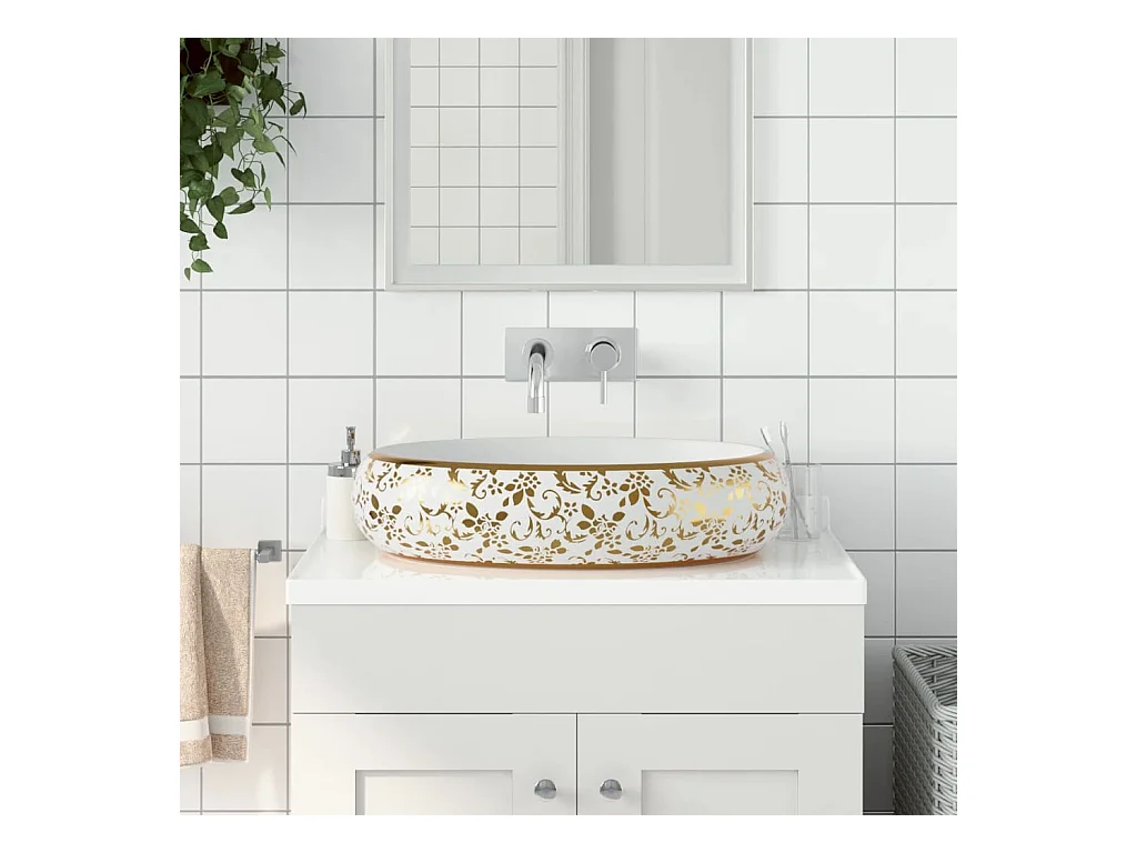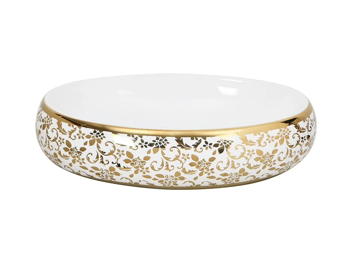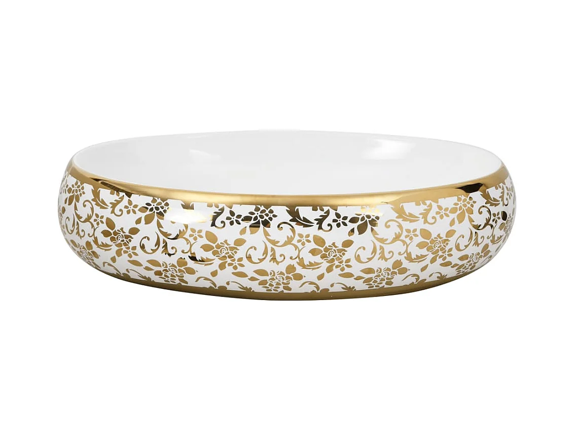 Wit en goud ovale opzetwastafel 59x40x15 cm keramiek