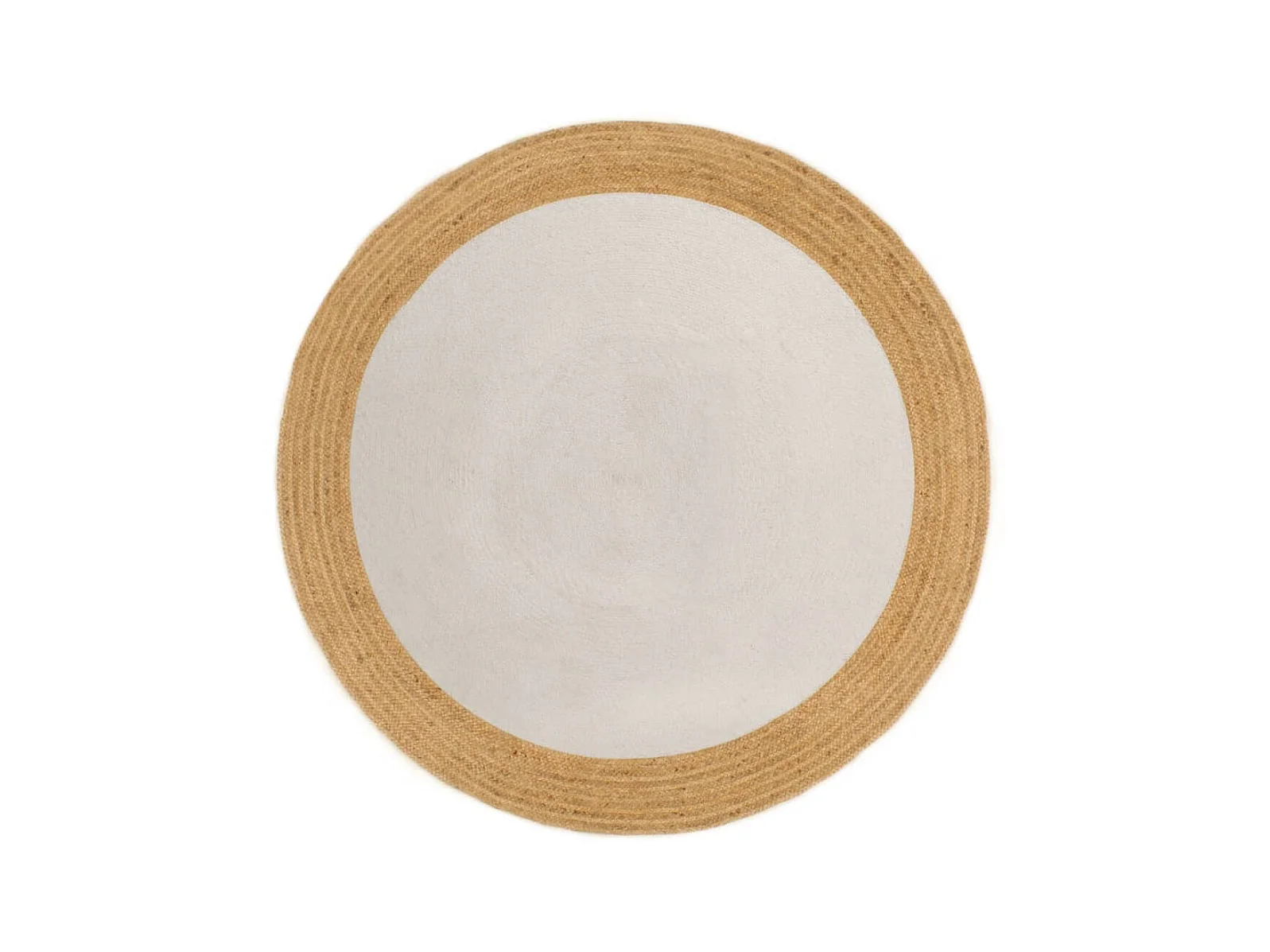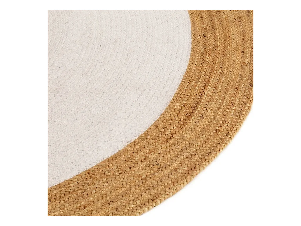 Wit en naturel gevlochten vloerkleed 120 cm Jute en katoen Rond