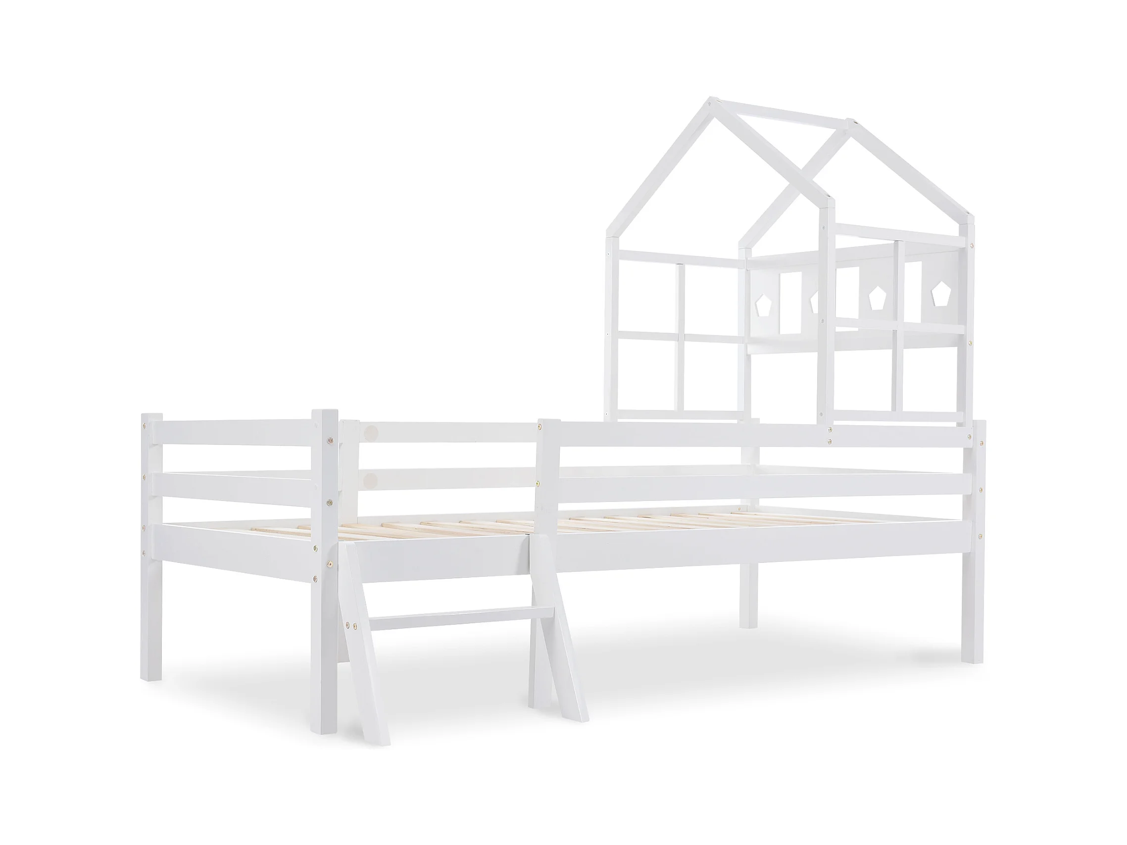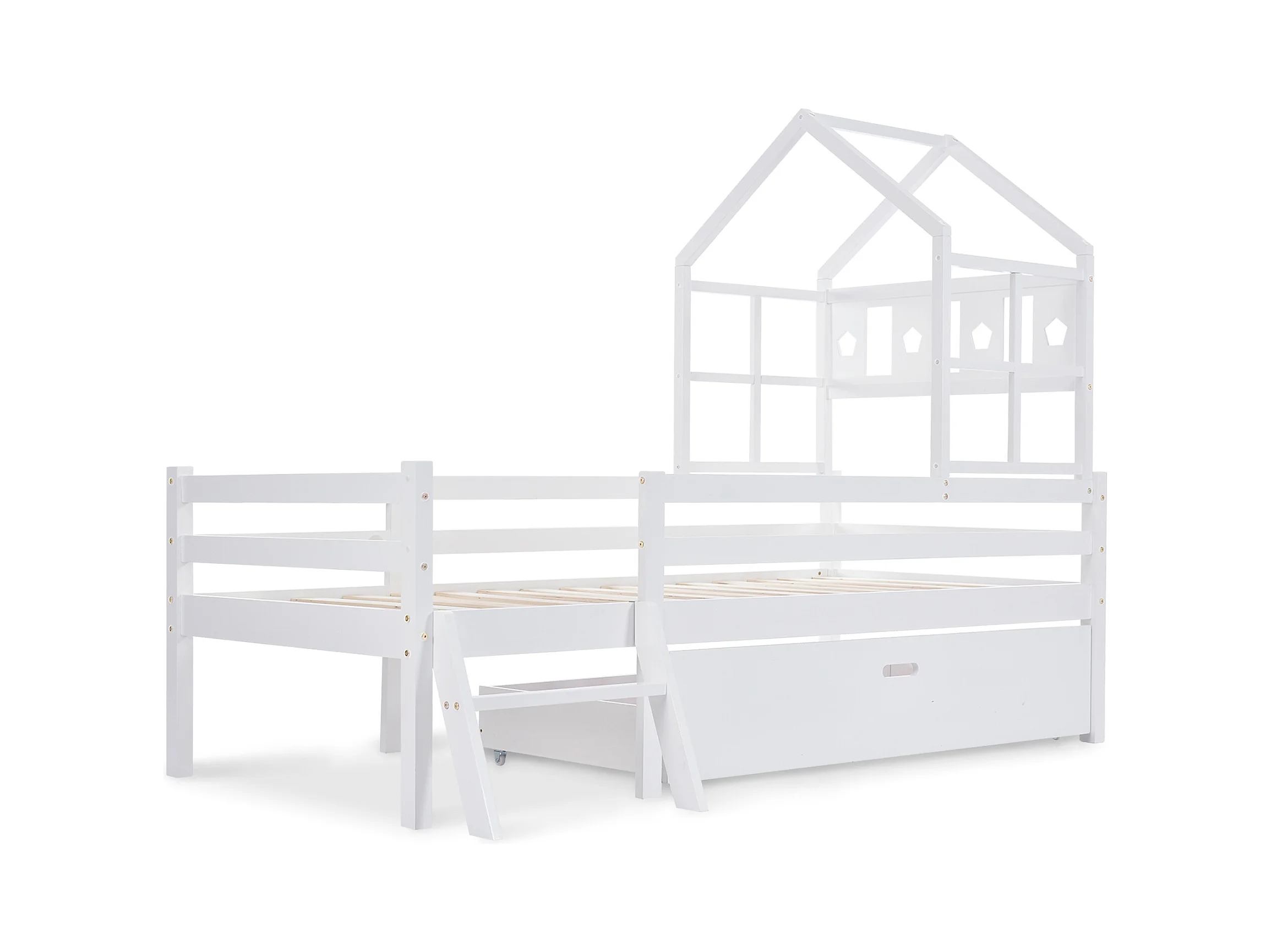 Wit kinderbed 90x200cm met lade, ladder en spijlenhekje, zonder matras