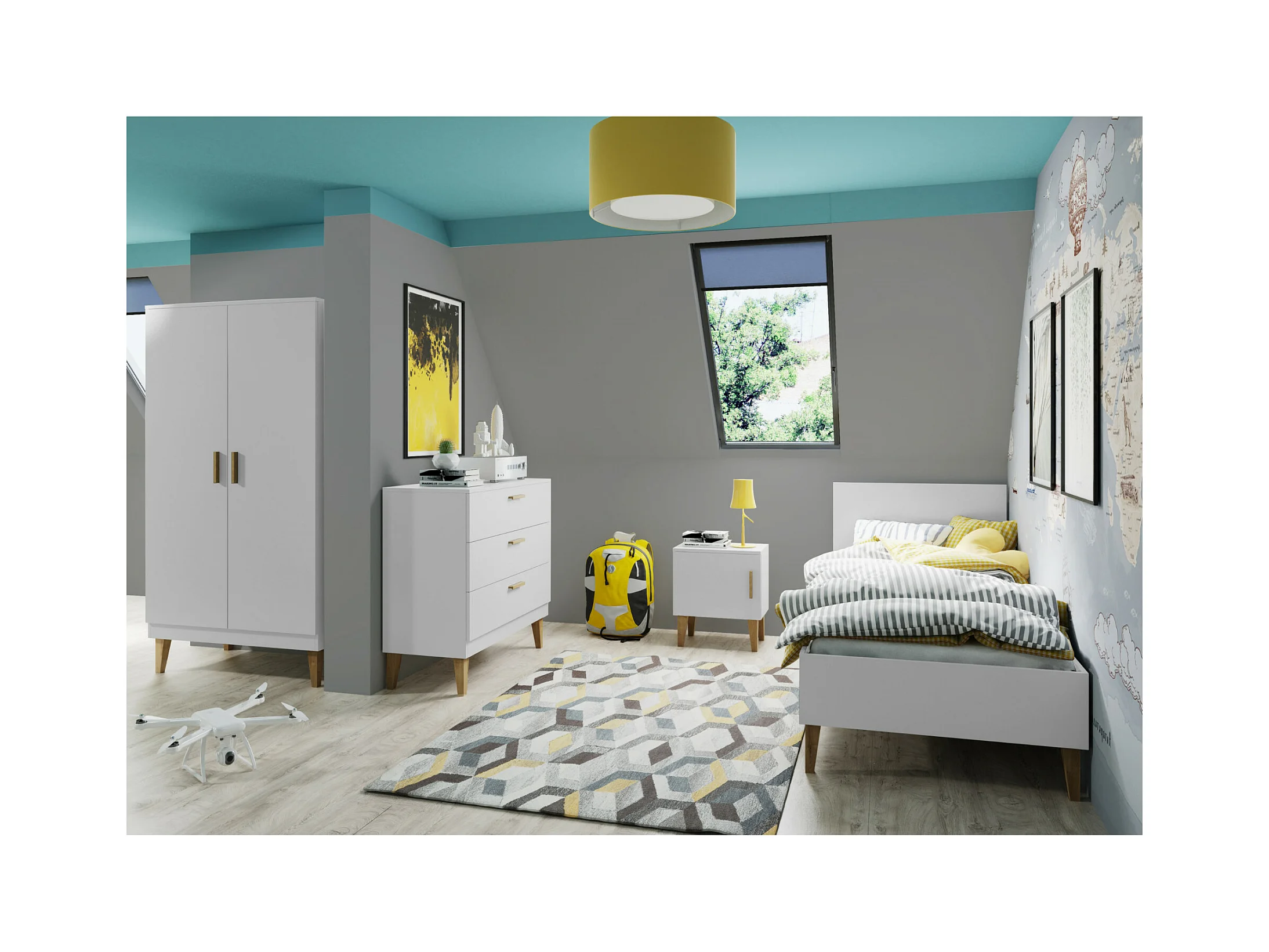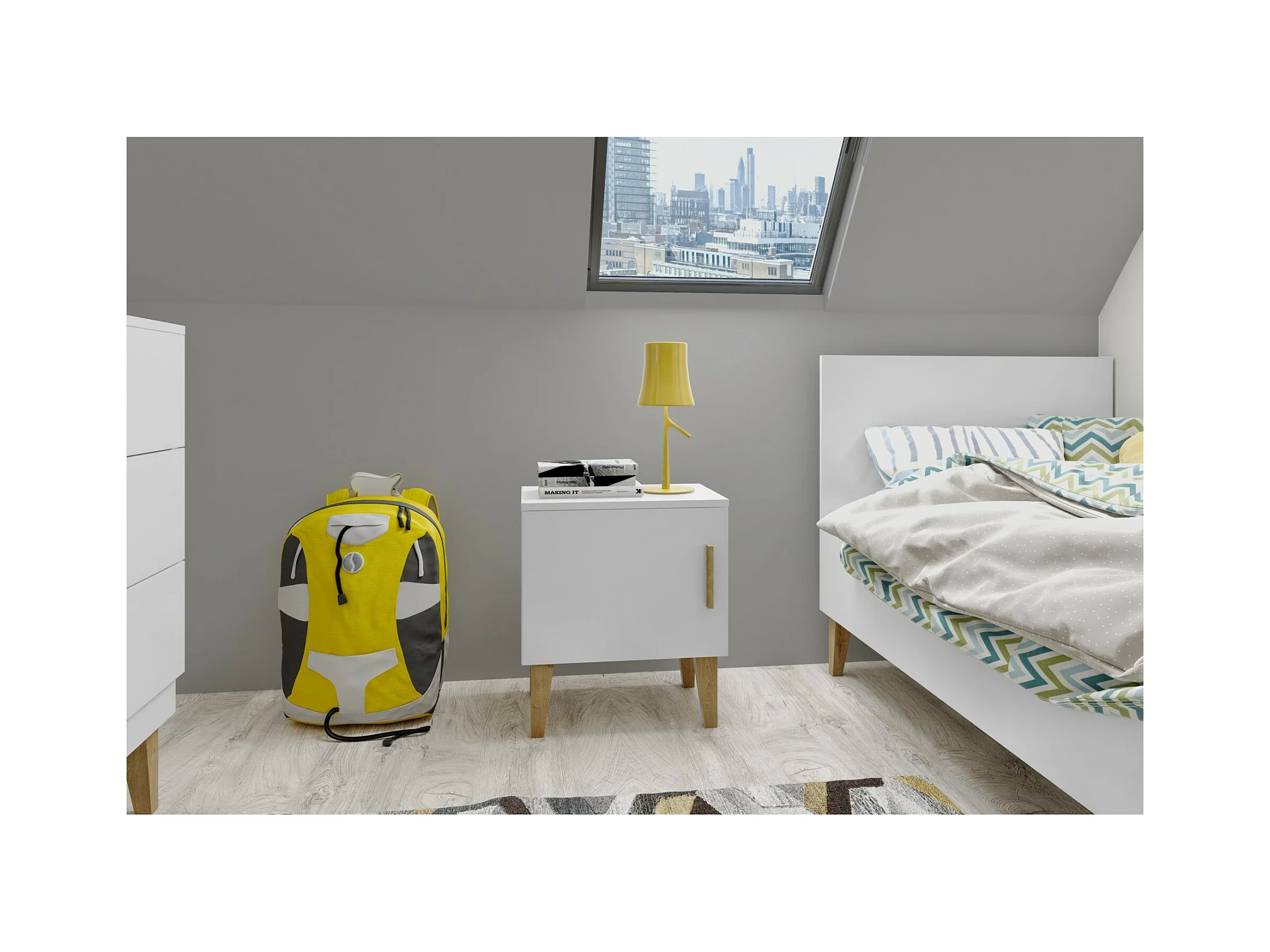 Wit Scandinavisch kindernachtkastje en Vanka eikenhouten poten