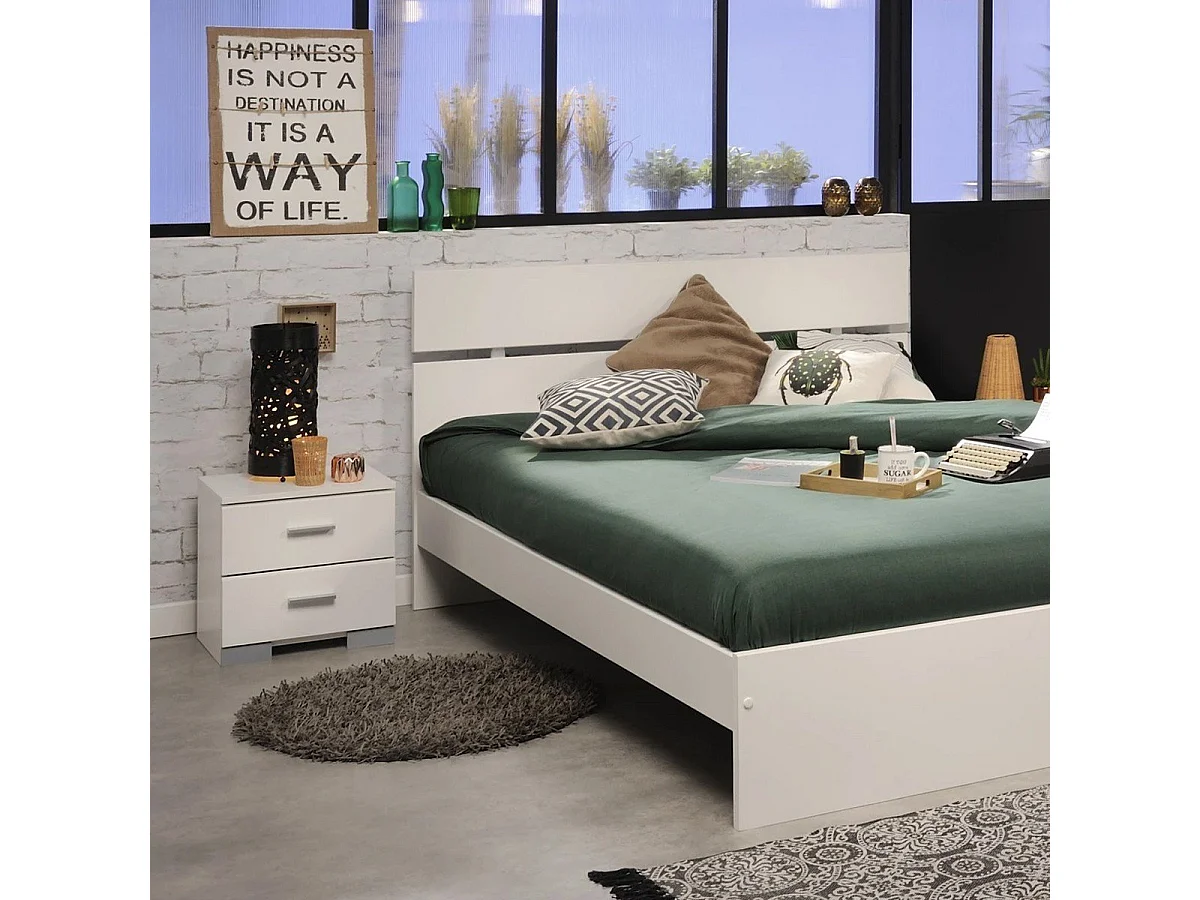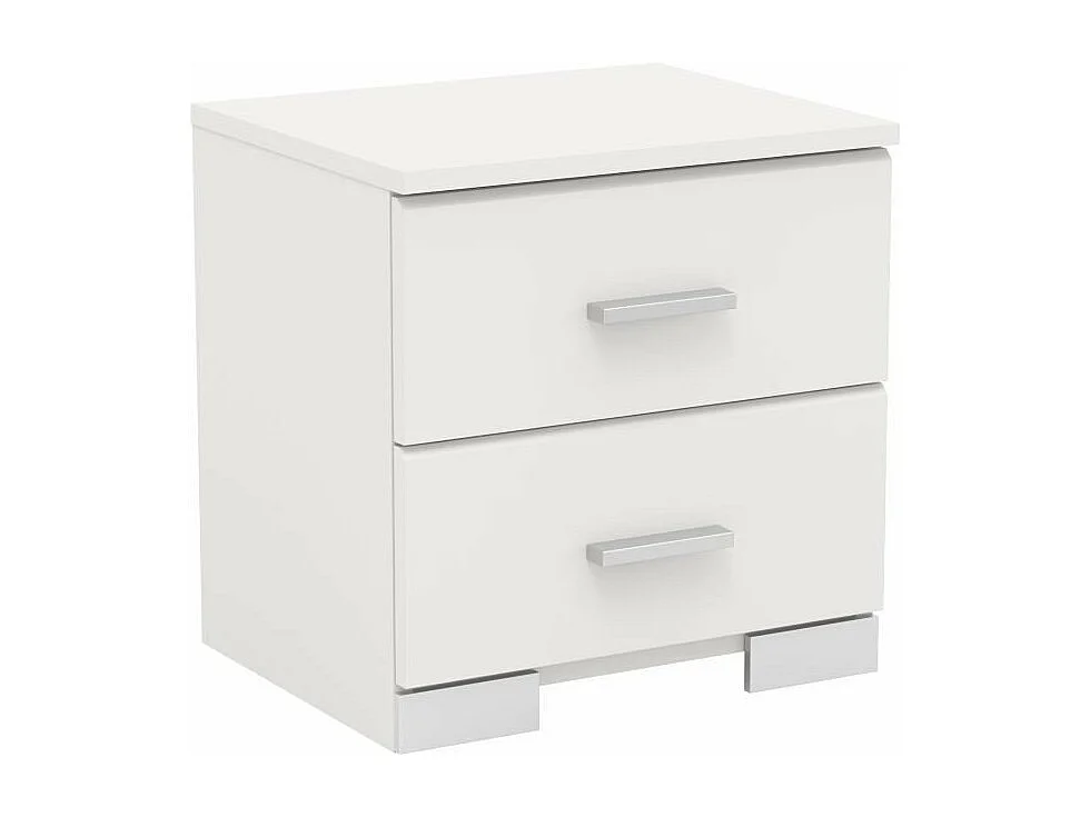 Wit nachtkastje met 2 laden en mat verchroomde handgrepen - L39,5 cm