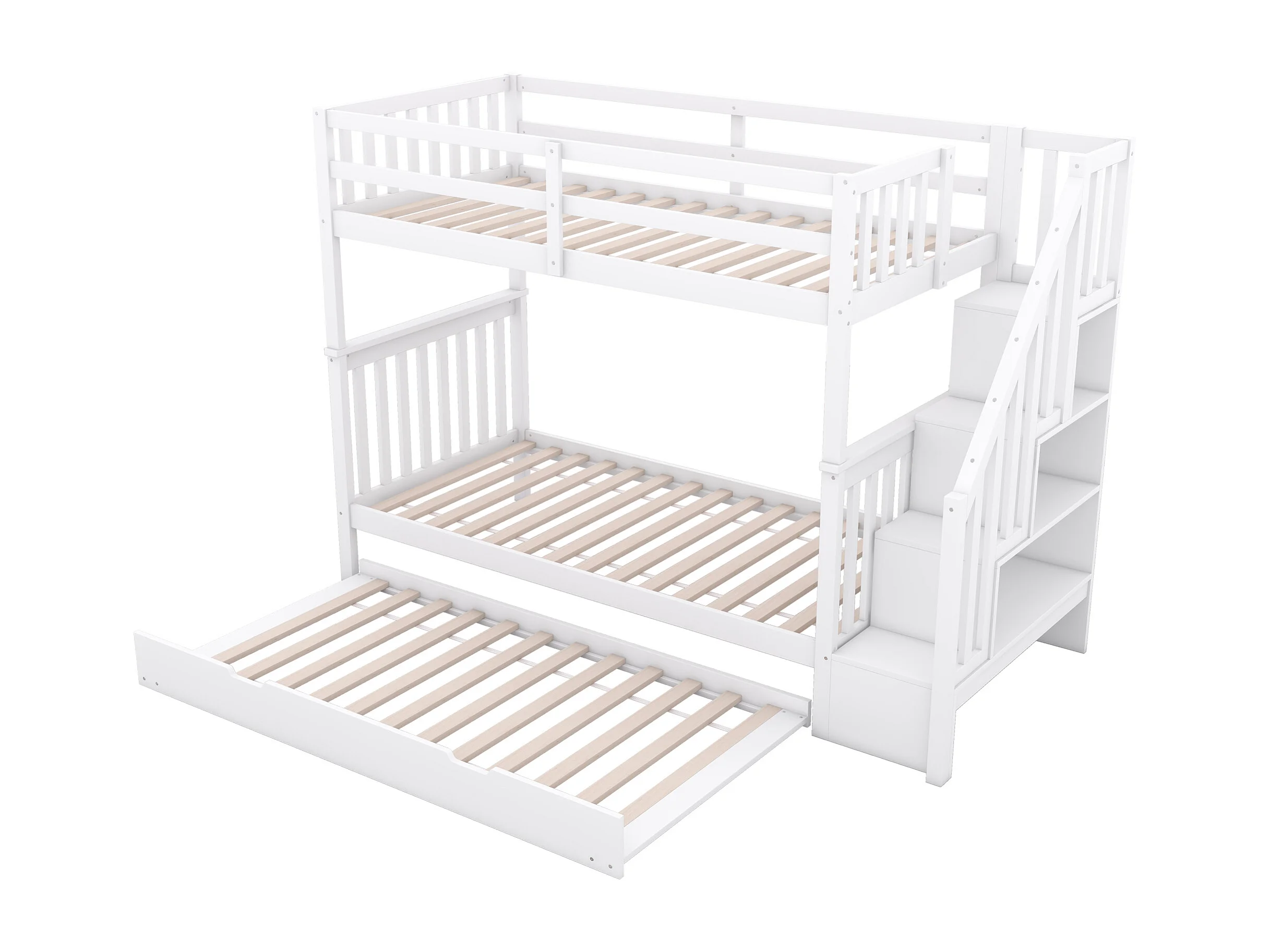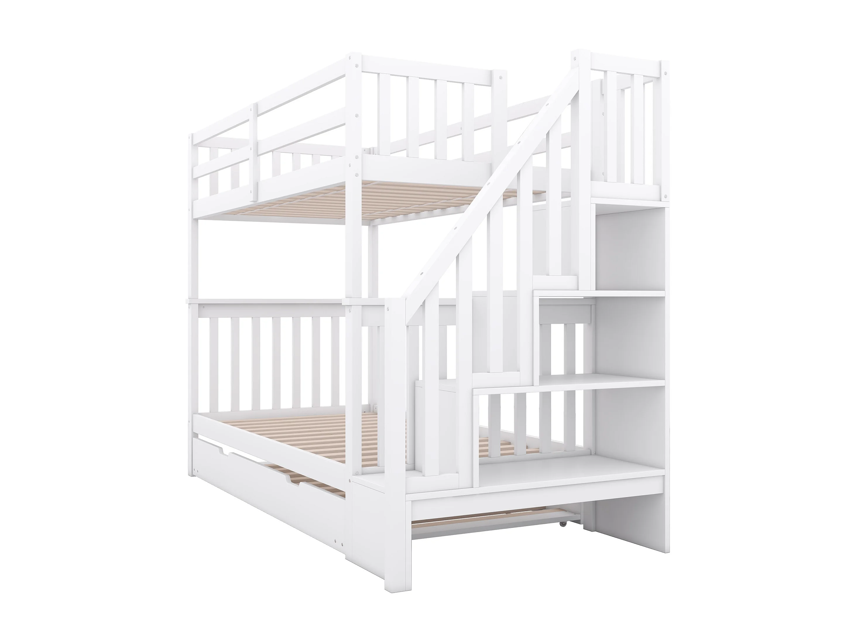 Wit stapelbed 90 x 200 cm met trapframe en uitschuifbed (zonder matras)